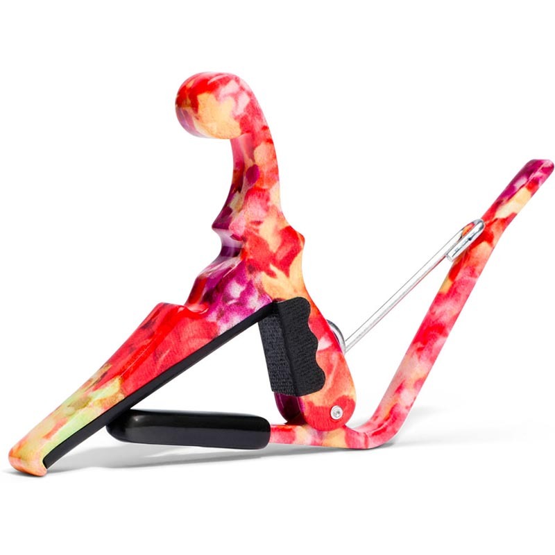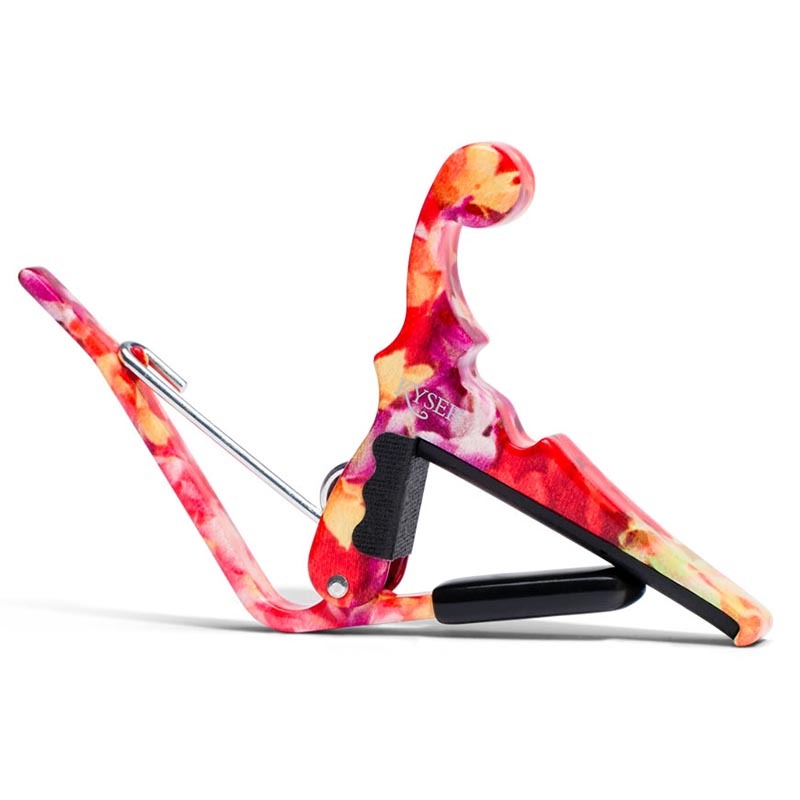 ハワイアンレイをまとったウクレレカポ!花柄をモチーフにしたファッショナブルなデザイン。Kyser®Quick-Change®ウクレレカポは、片手で簡単に操作できるトリガーデザインを採用し、ウクレレのプレイ時にもキーの素早い変更を可能にします。Kyser® Quick-Change® は、精巧にデザインされた高耐久性のカポタストです。チューニングやコードフォームを変えずにギターのピッチを上げて異なるキーで演奏するという、カポタスト本来の目的を確実に果たしてくれる製品です。初心者か熟練のプロミュージシャンであるかに関わらず、ほんの数秒で、片手だけを使ってピッチを変えることができます。Kyser® Quick-Change® の魅力はそのシンプルさにあります。近年では様々なデザインのカポタストが販売されていますが、同分野のパイオニアである本製品には、誰にも真似できない唯一無二の意匠が込められています。
