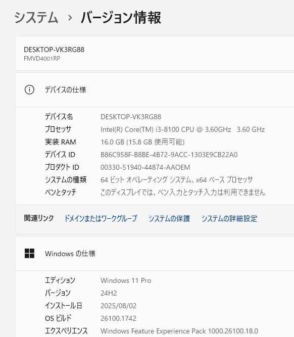 富士通 ESPRIMO D558/VX●Core i3-8100 3.60GHz/メモリ16GB 新品 SSD256GB/無線LAN/Sマルチ/Win11 Pro