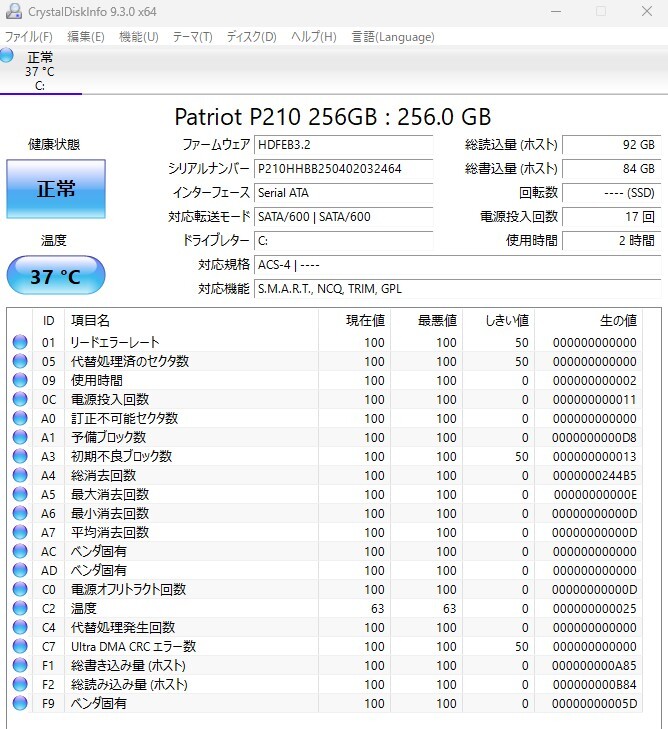 • 光学ドライブ:DVDスーパーマルチドライブ(読込のみ確認)