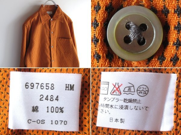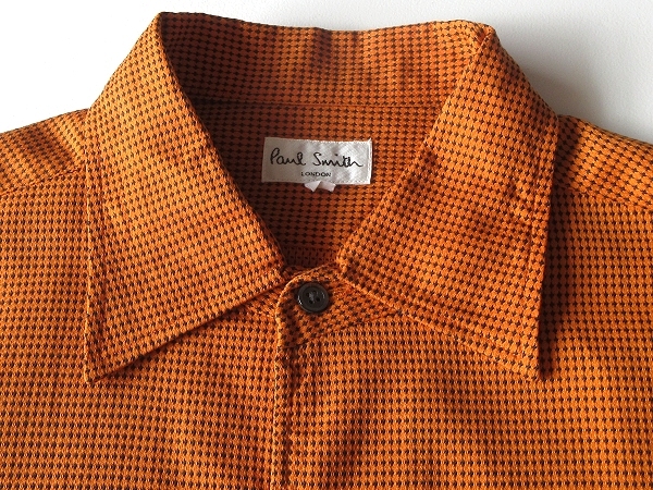希少 80s-90sビンテージ Paul Smith LONDON ポールスミス ロンドン コットン ドビー ジャガード シャツ M オレンジ ブラック ネコポス対応