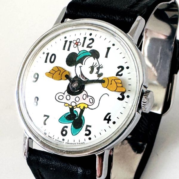 機械式手巻き、盤面には可愛らしいミニーが描かれています。