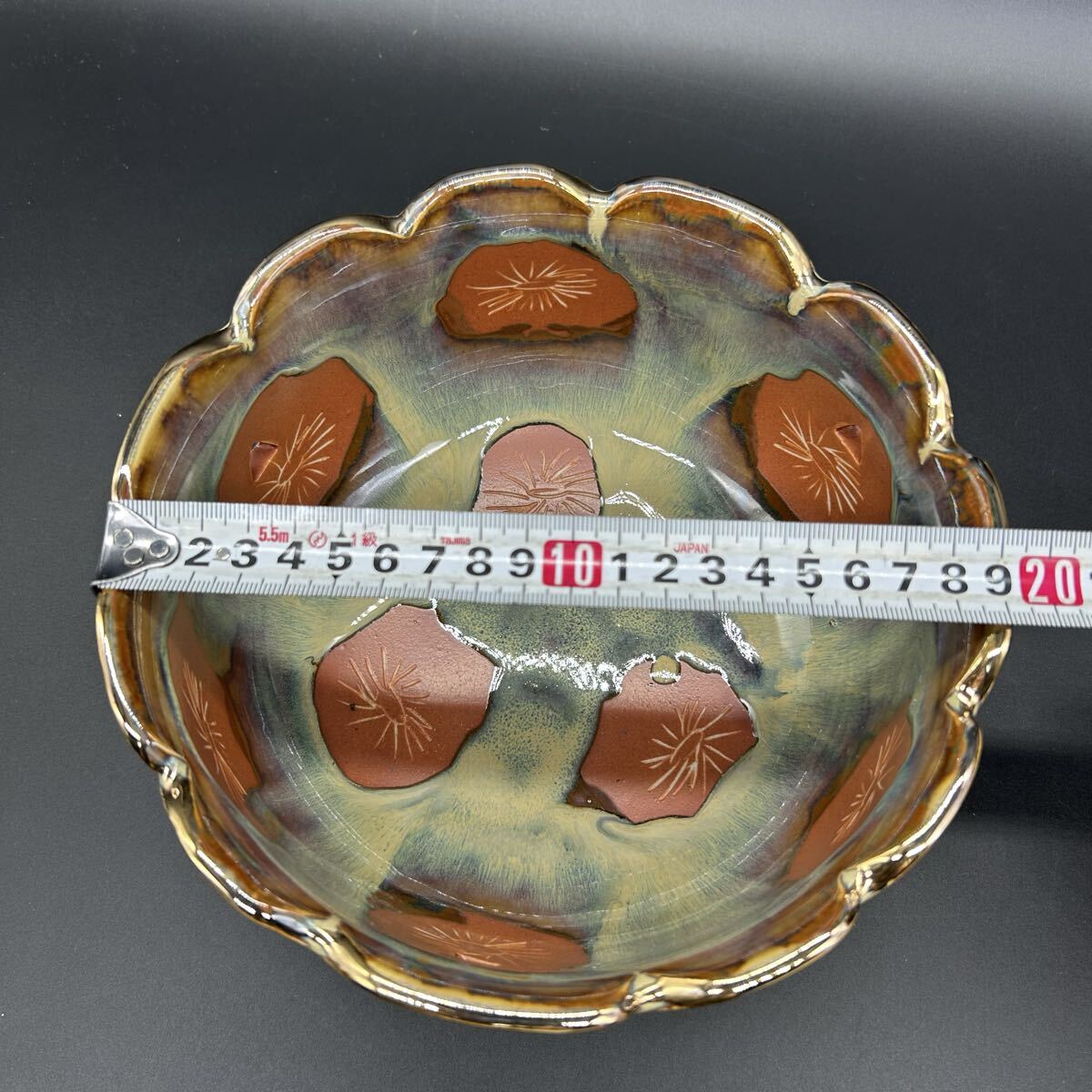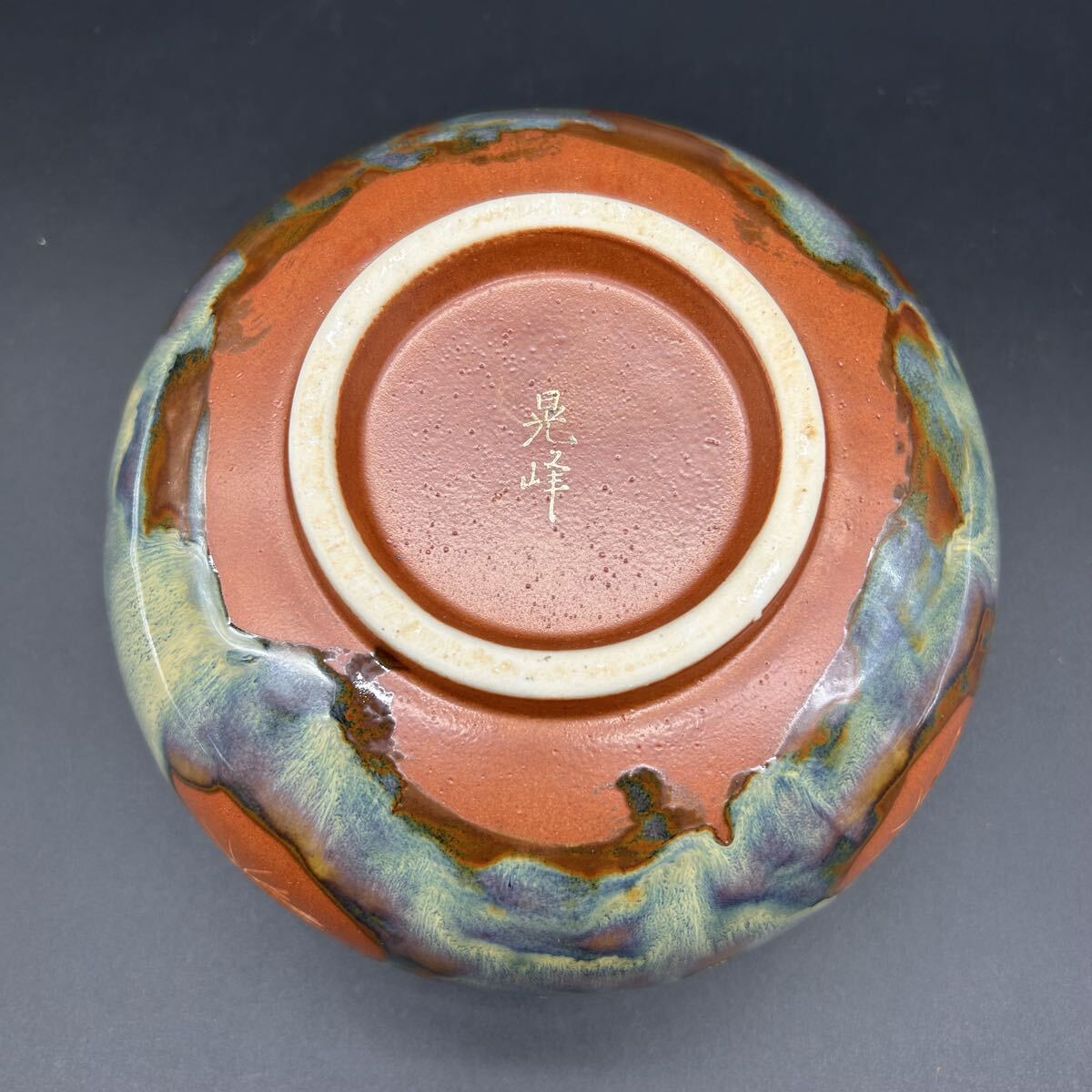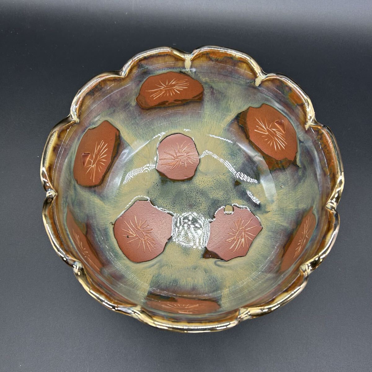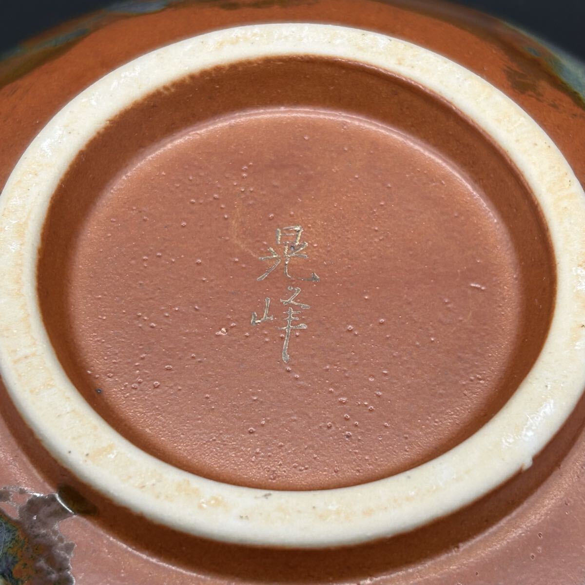 晃泉 晃峰 赤釉菊絵 口金天目菊 菓子鉢 深鉢 盛鉢 鉢 ボウル 三角穴透かし 菓子器 和食器 エ15