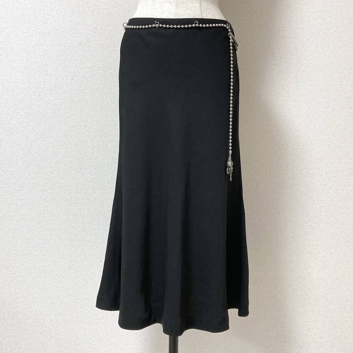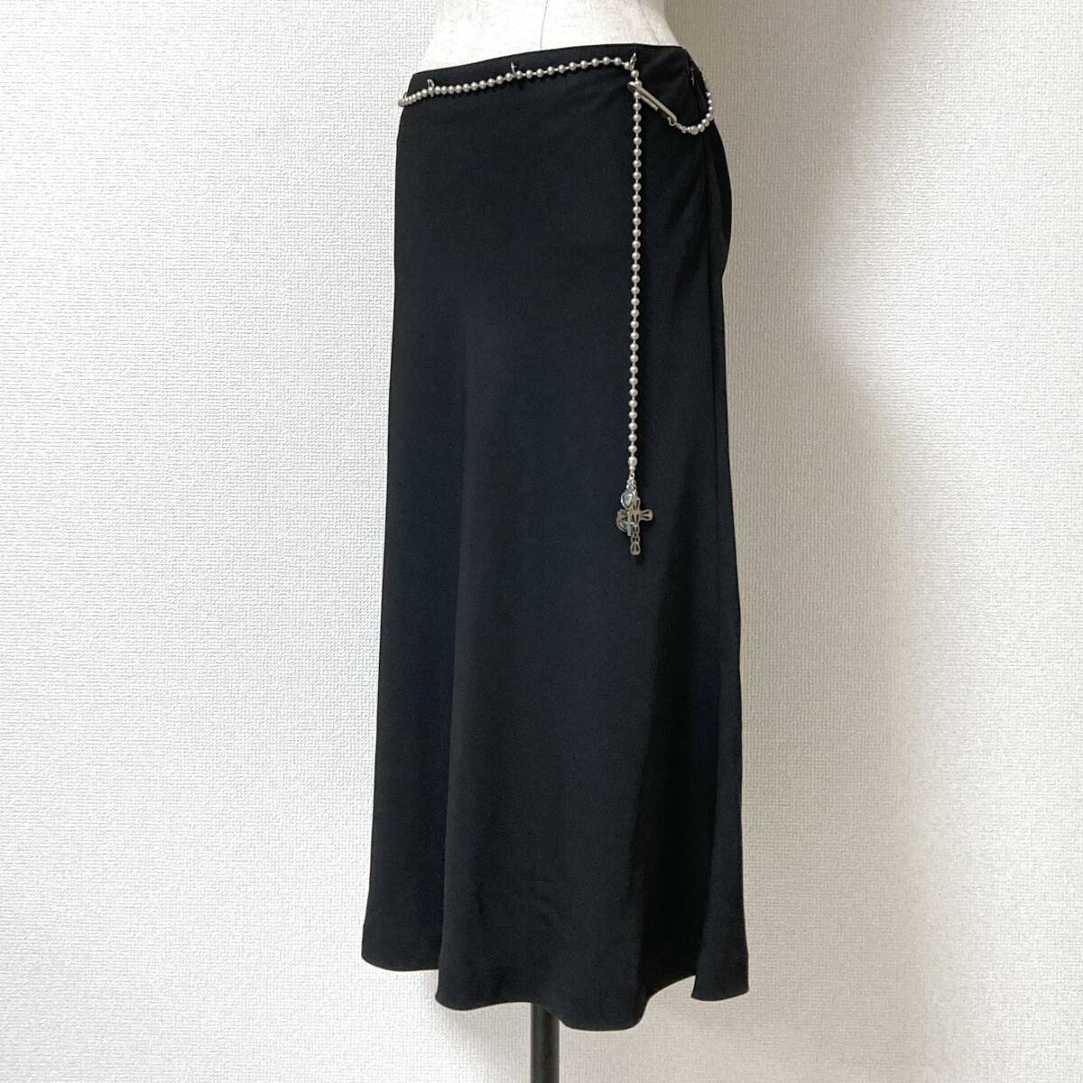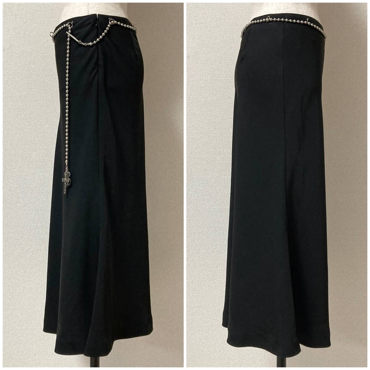 Jean Paul GAULTIER FEMME チェーン クロス 装飾 シルク混 マーメイド ロング スカート ブラック