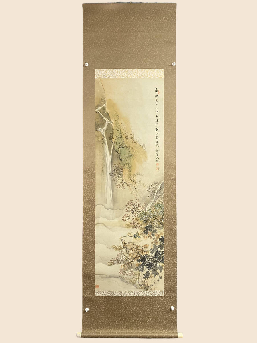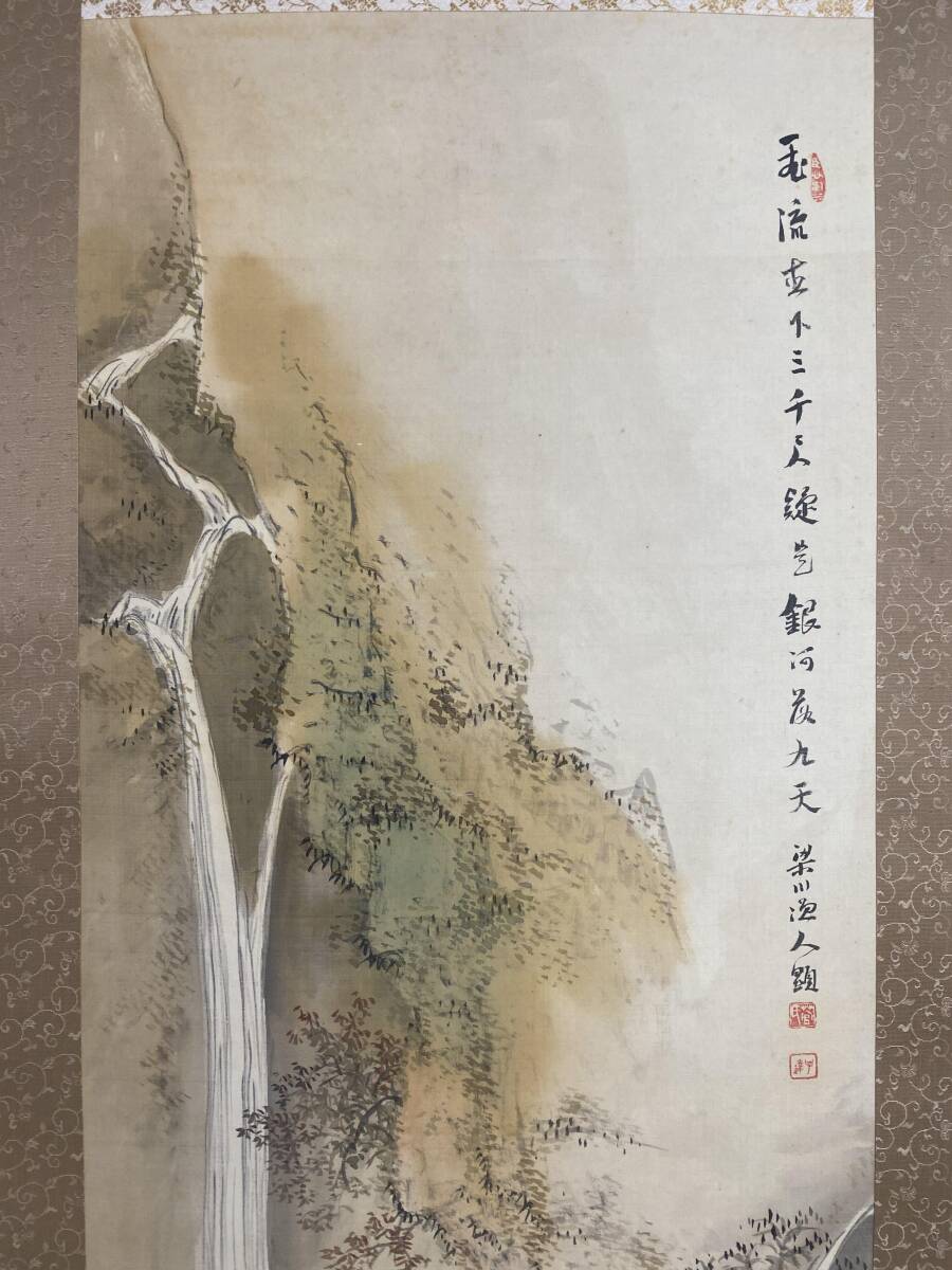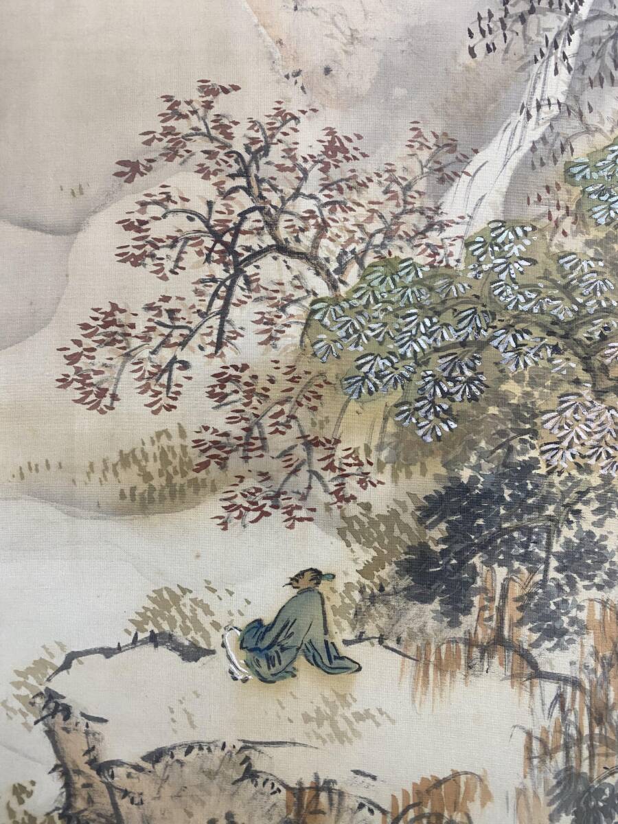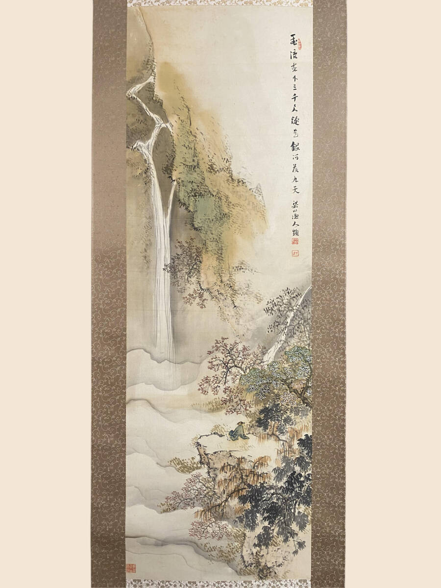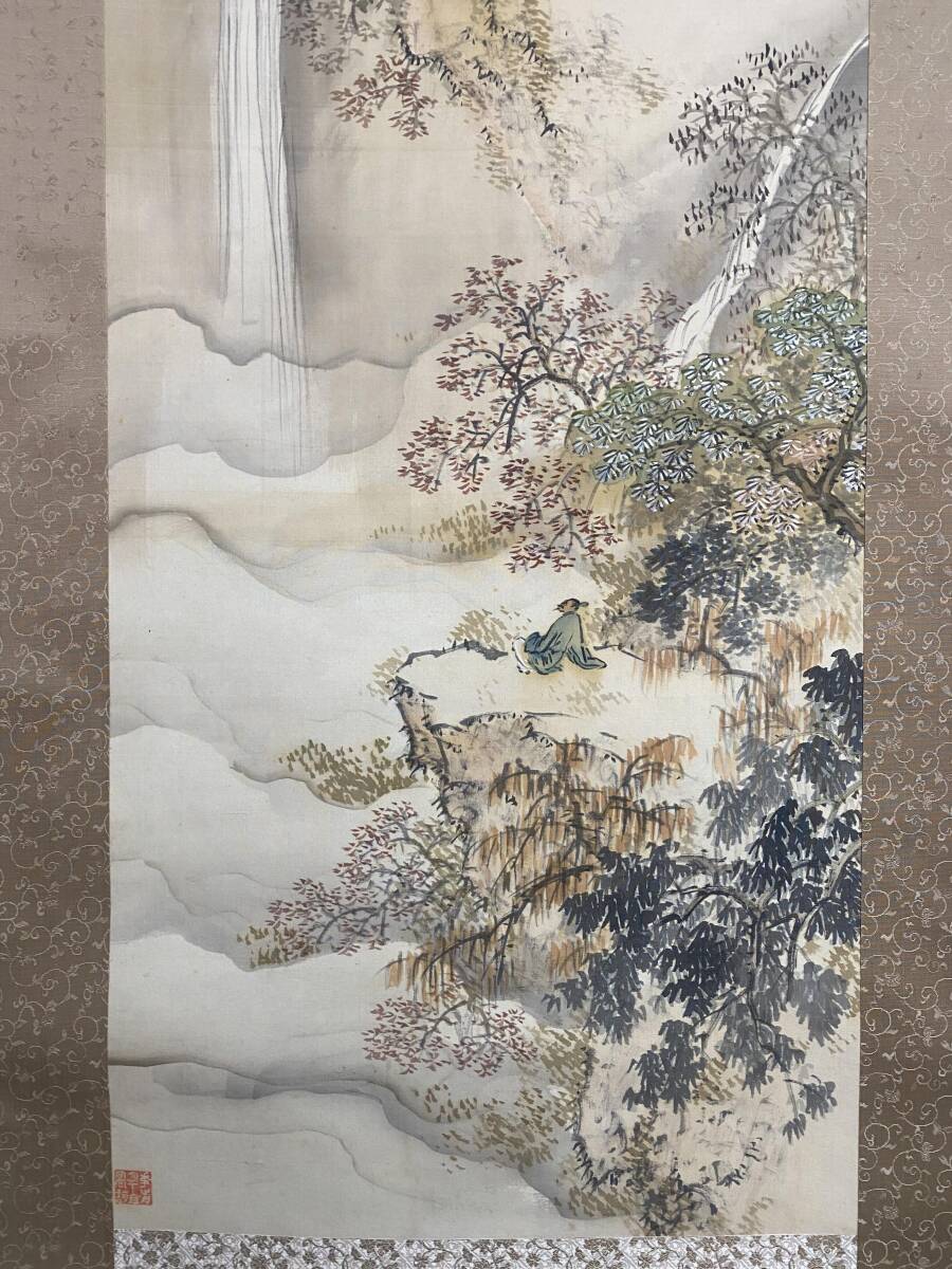 『模写』菅野梁川『高士観瀑図』絹本 南画家 岩城梁川の人 中国絵画 高森砕巌師事 掛軸 璟蔵25070316