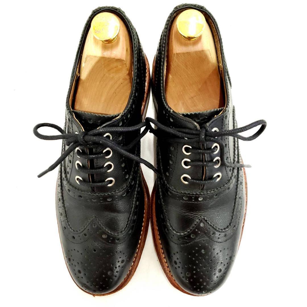 クラシックなブラックレザーに、フルブローグの装飾が施された、伝統的かつ洗練されたデザイン。
