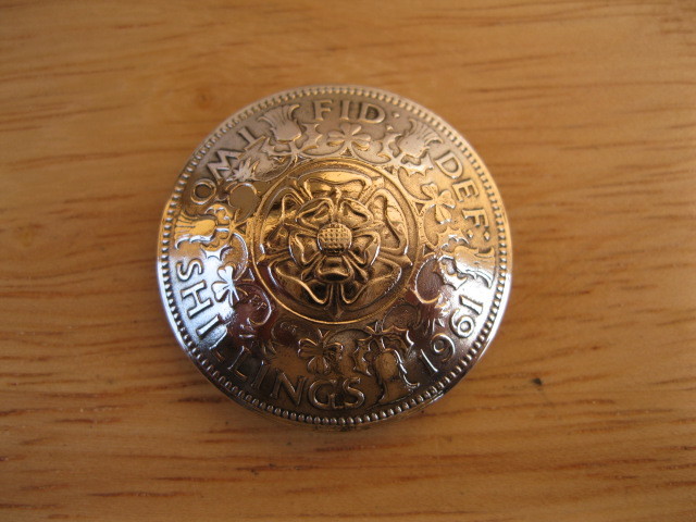 | イギリス2シリングエリザベスⅡ世硬貨のコンチョです。図柄はバラとアザミです。約28mmです。銀貨ではありません。白銅貨です。 流通硬貨を使用し、当方が加工しました。裏面のシカゴスクリューはブラス製の高価な物を使っています。ビスのサイズはM4です。厚革用に長さ8mmの長めのビスもお付けします。 ジャンパーホック大に対応致しております。 |