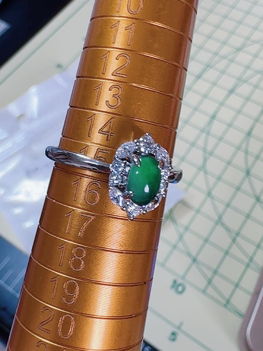 R2M-0262天然本翡翠A貨《本物保証》 フリーサイズ翡翠リング 現状約15号 天然翡翠 一点物 希少 縁起物 お守り 幸運 パワーストーン