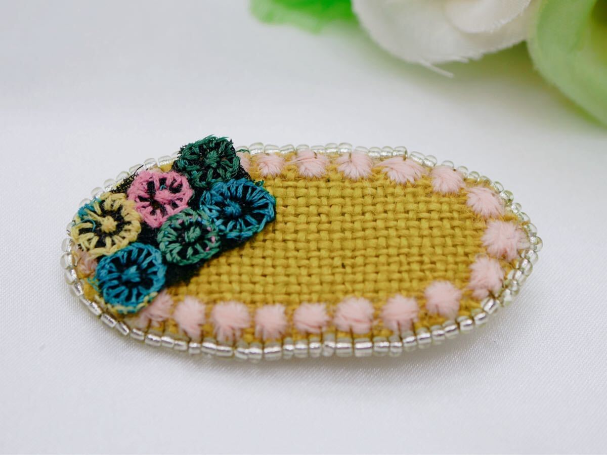 ミナペルホネンのはぎれを使用したハンドメイドのブローチです。