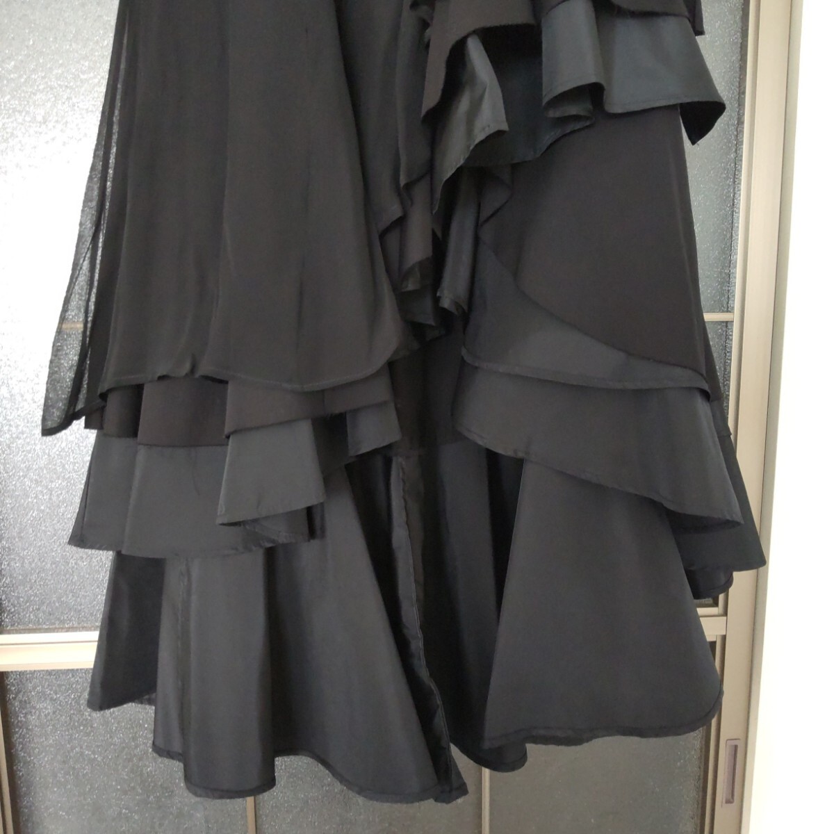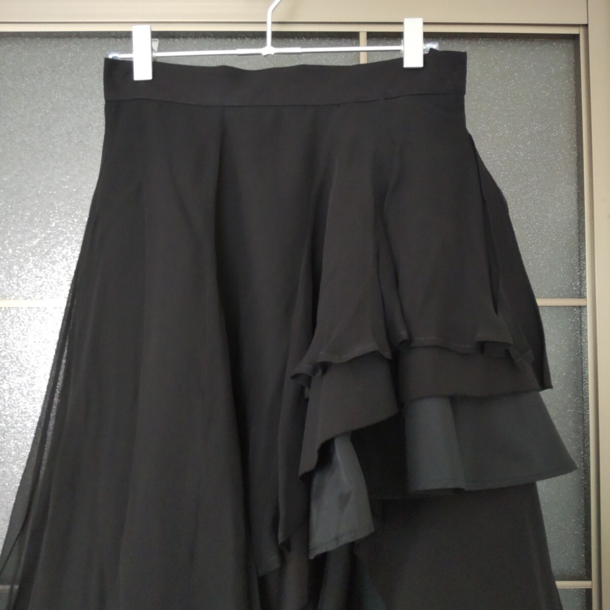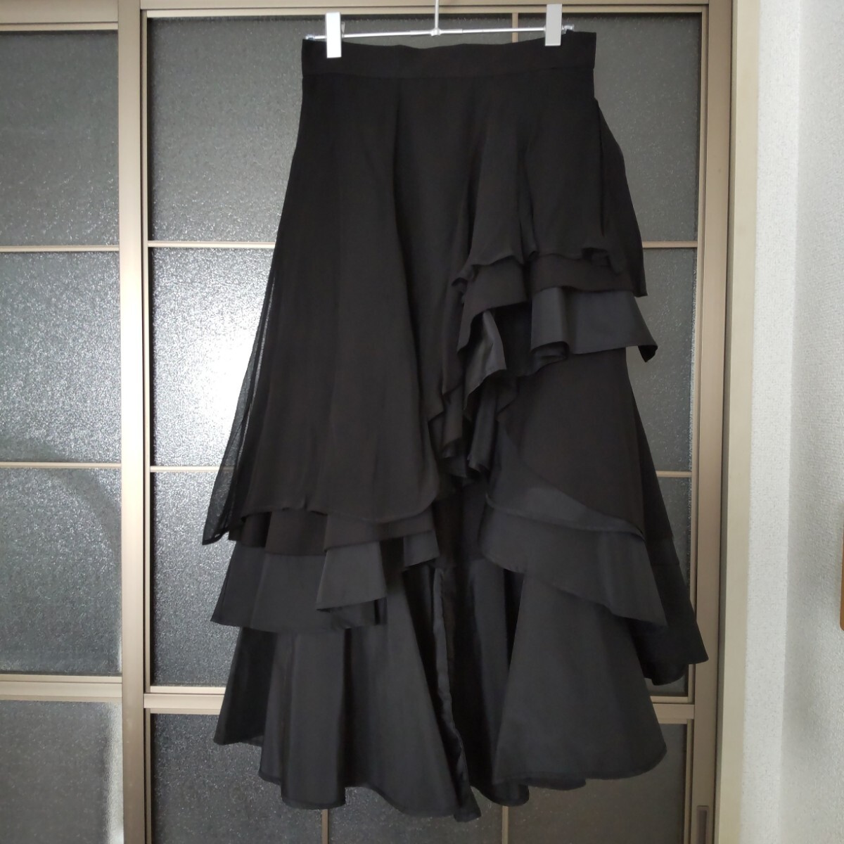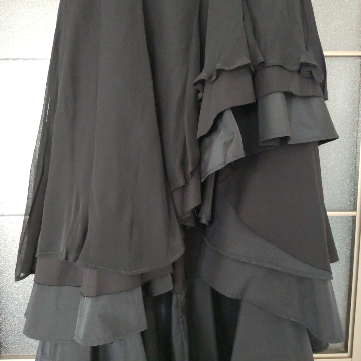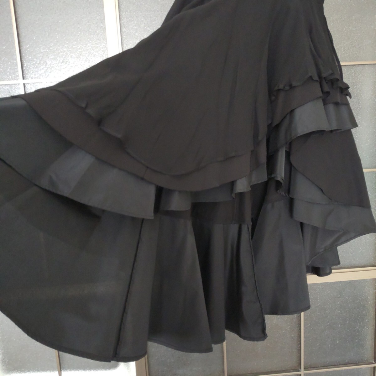絹綿ポリエステル生地が重なり合ったレイヤードスカートになります。