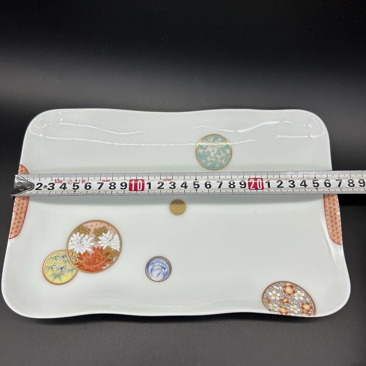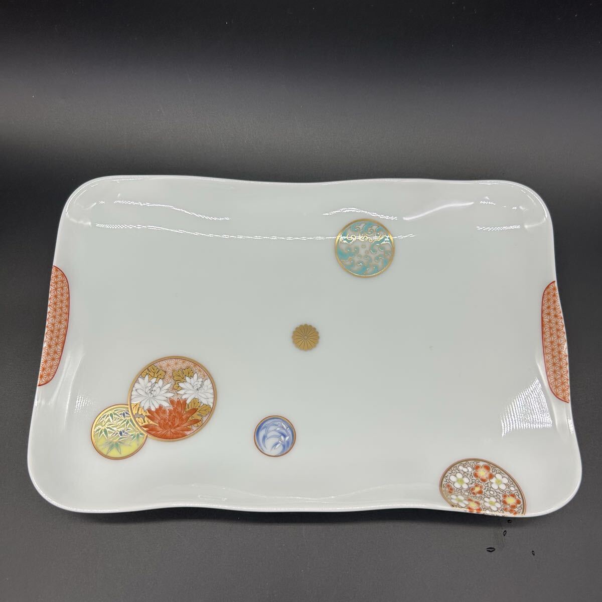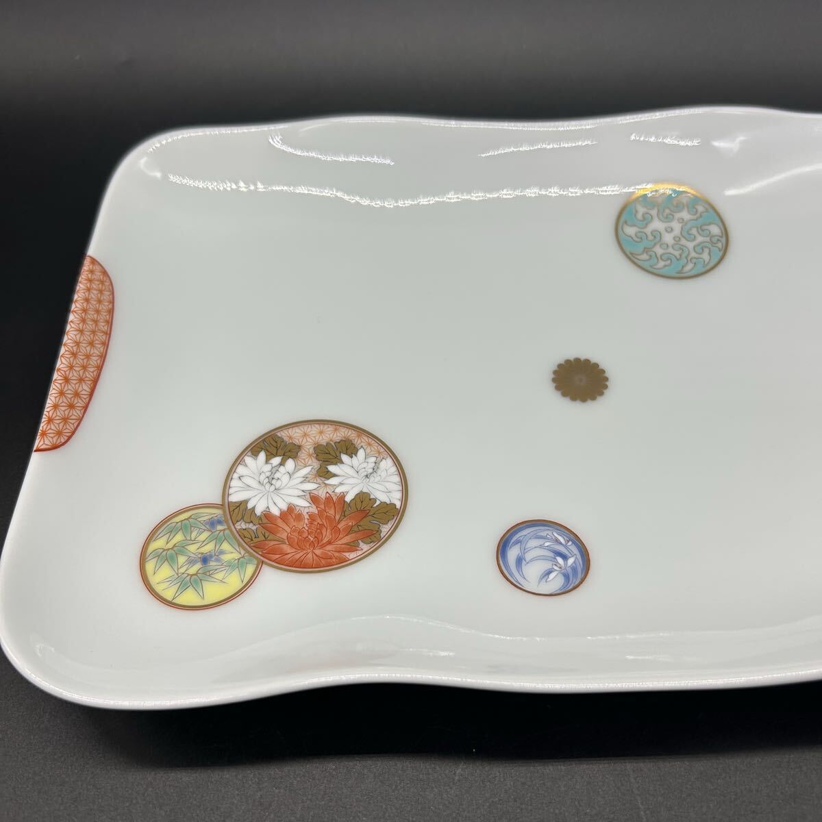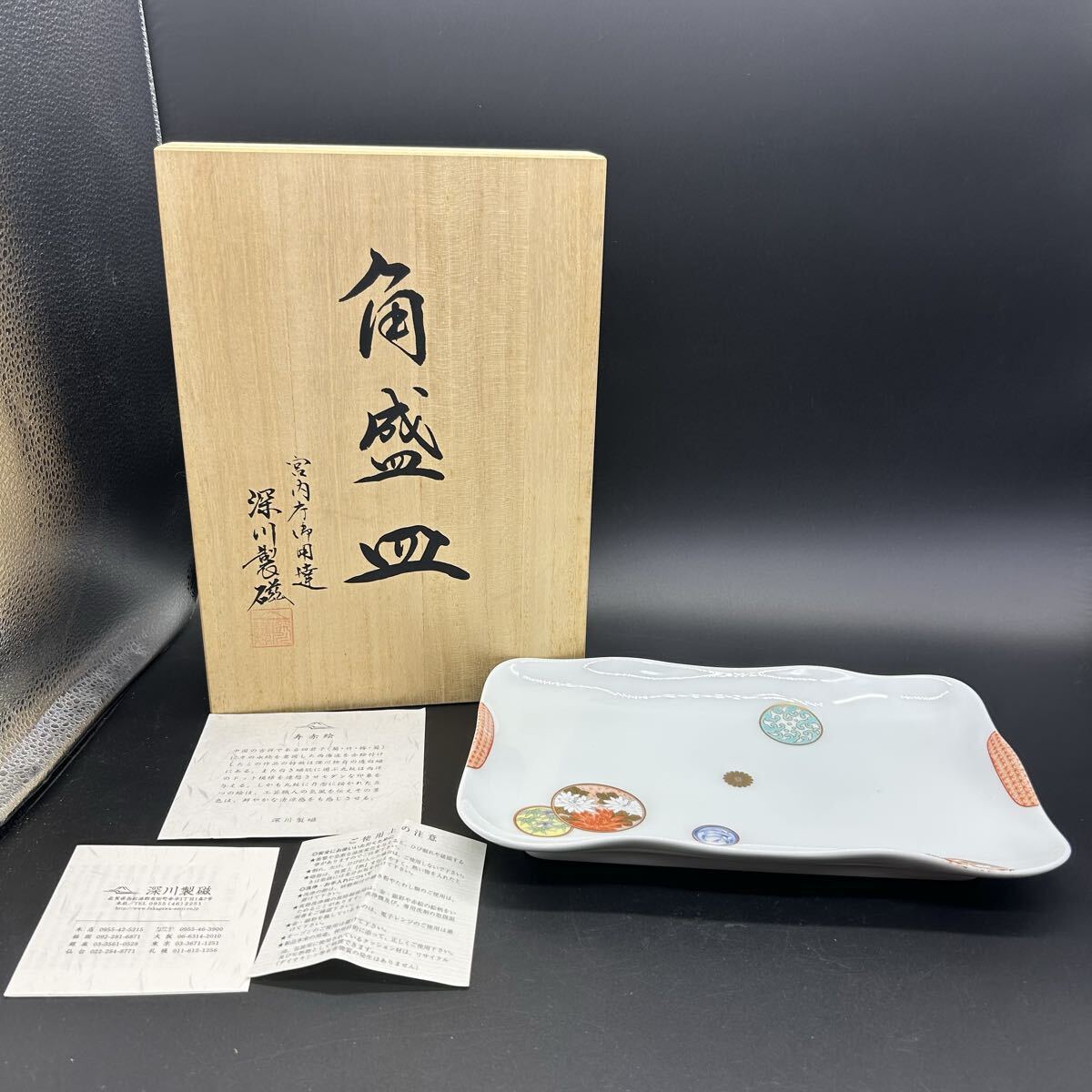 深川製磁 寿赤絵 角盛皿 角皿 大皿 陶器 和食器 エ16