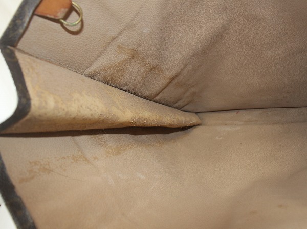 内側の生地が劣化し剥がれがあり剥がれた粒子がてにつきざらつきございます。