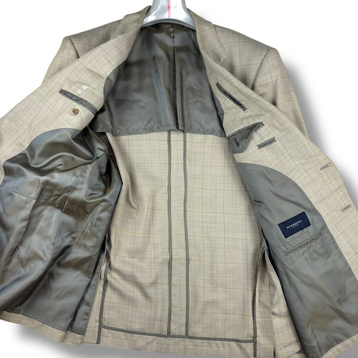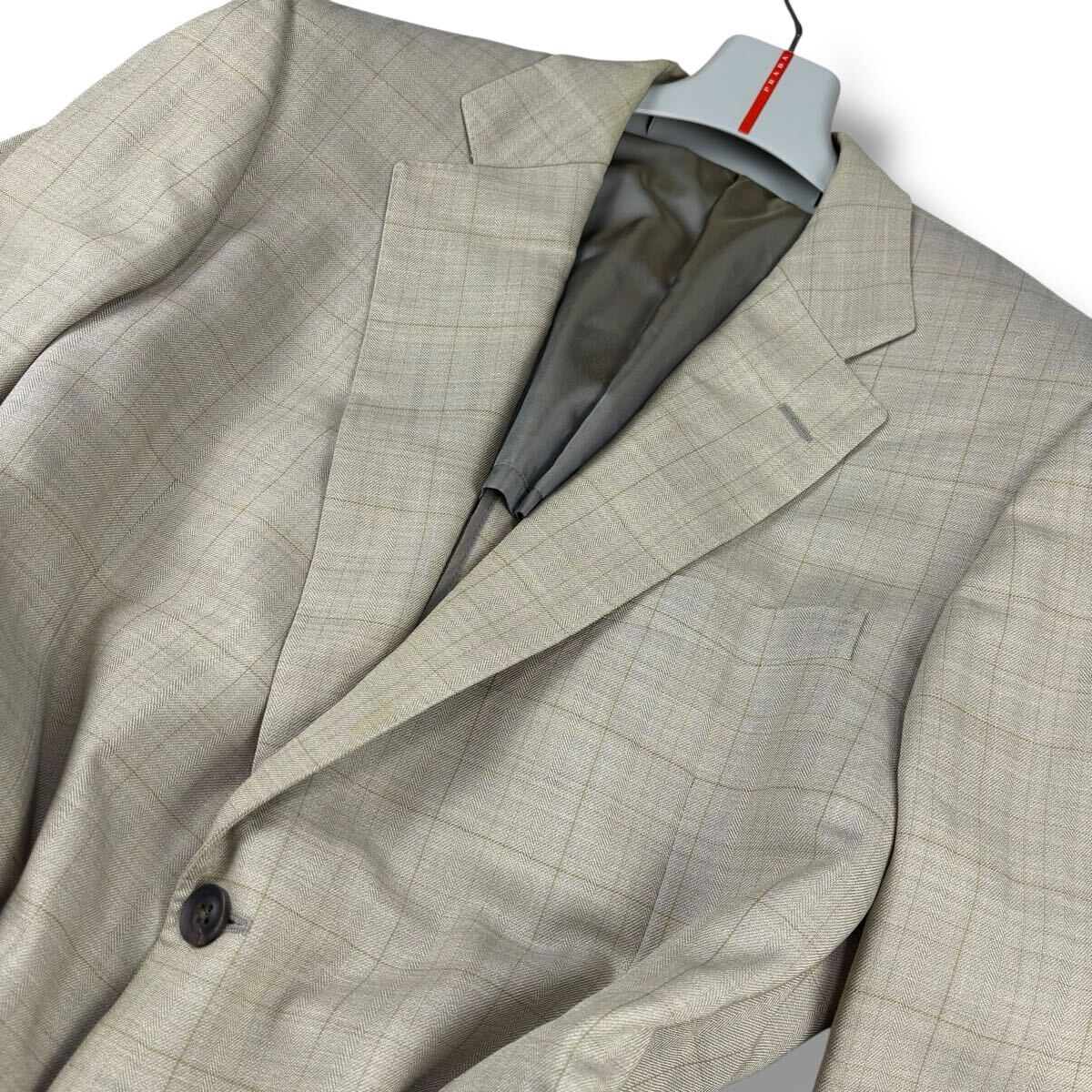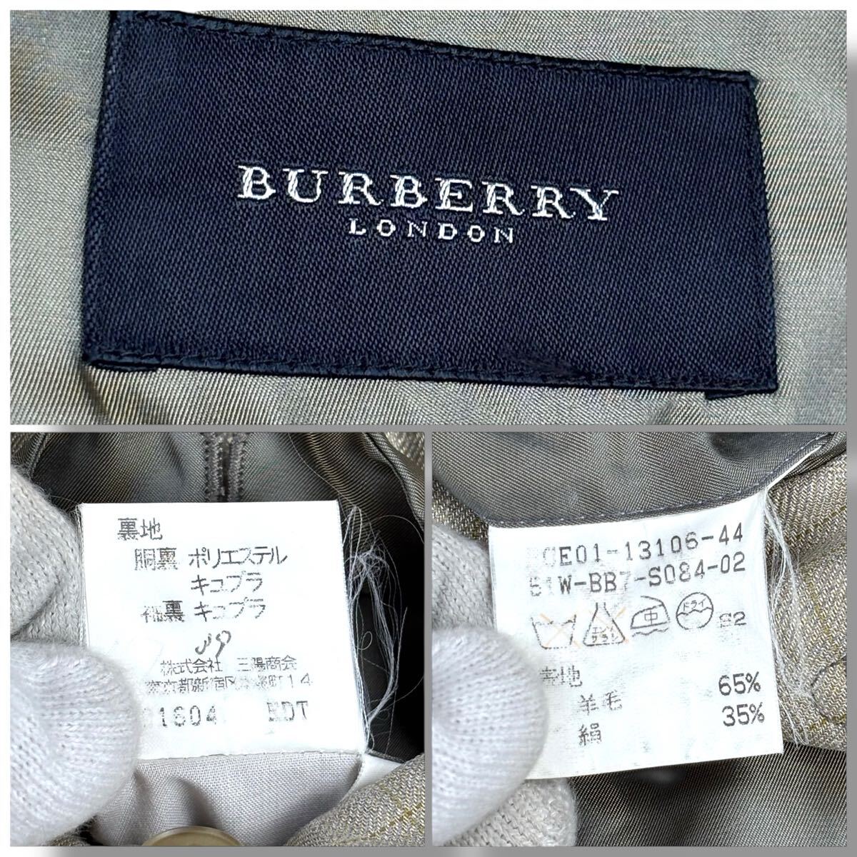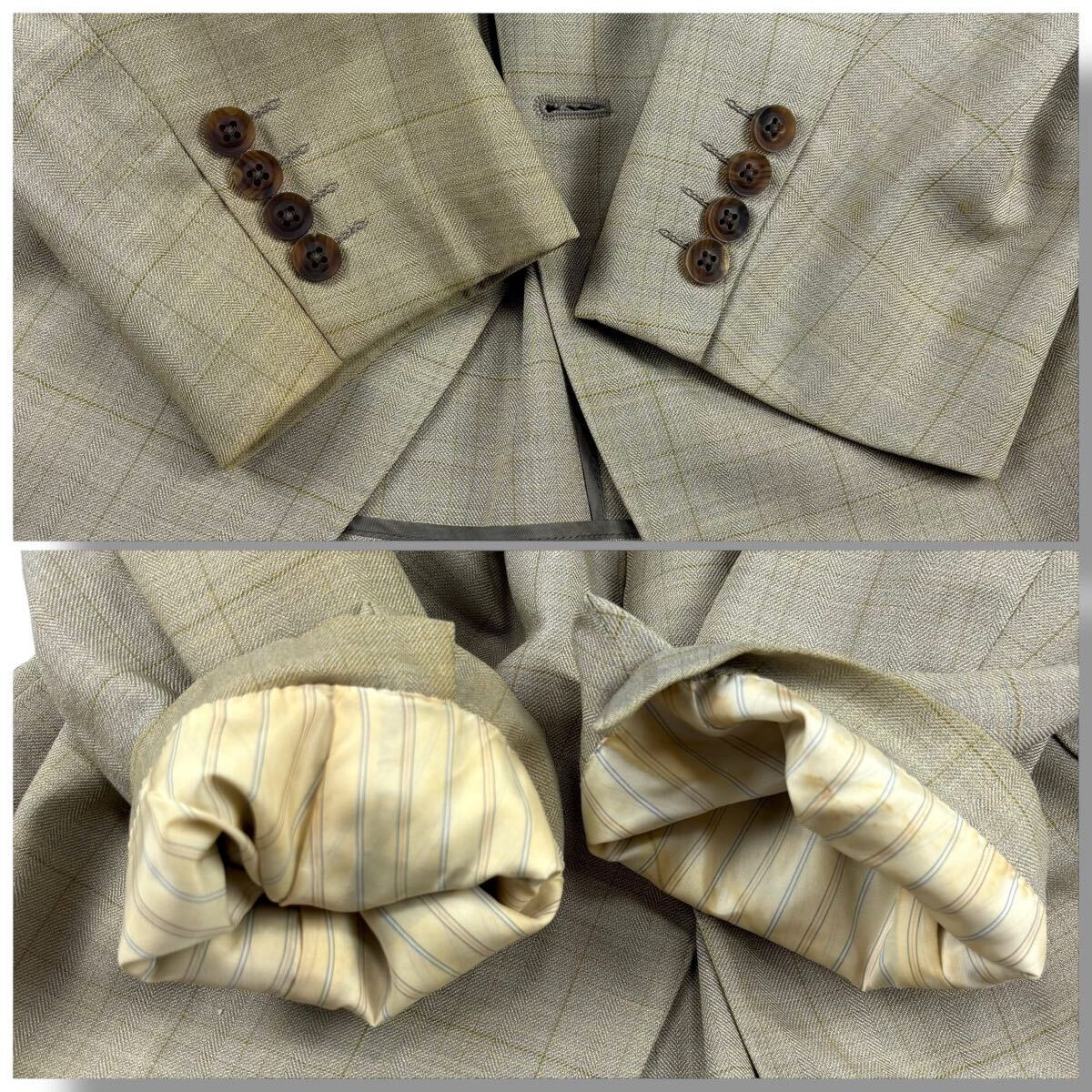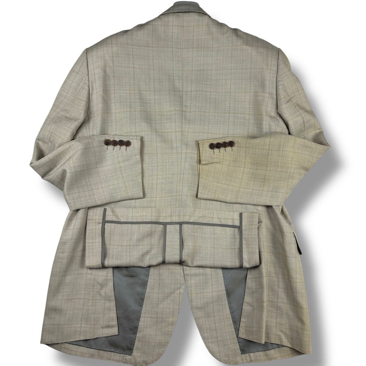 右袖に変色、両袖口裏に変色、左ラペル下部に薄染みがございます。