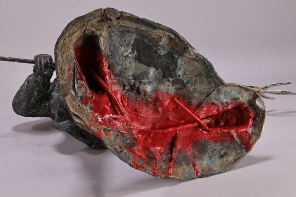 『 時代金工 明治期 ブロンズ像 銅製 加藤清正 武者 武士 薙刀 置物 床飾 高58㎝ BK091 』の出品です。