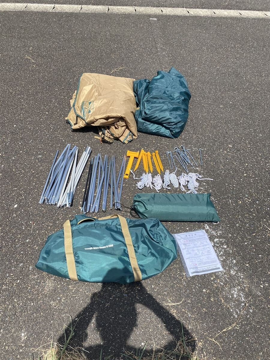 | 付属品:取説 グランドシート ロープ×7 ハンマー×1 ペグ×19 ポール×4 大きなダメージなく、一般的な中古品になります。 店頭でも同時に販売している為、 状態に変化がある場合がございます。 ※光の加減により、実際のものと異なる色に見える場合がございます。 ご不明な点はお気軽に販売店舗までお問い合わせくださいませ。 |
