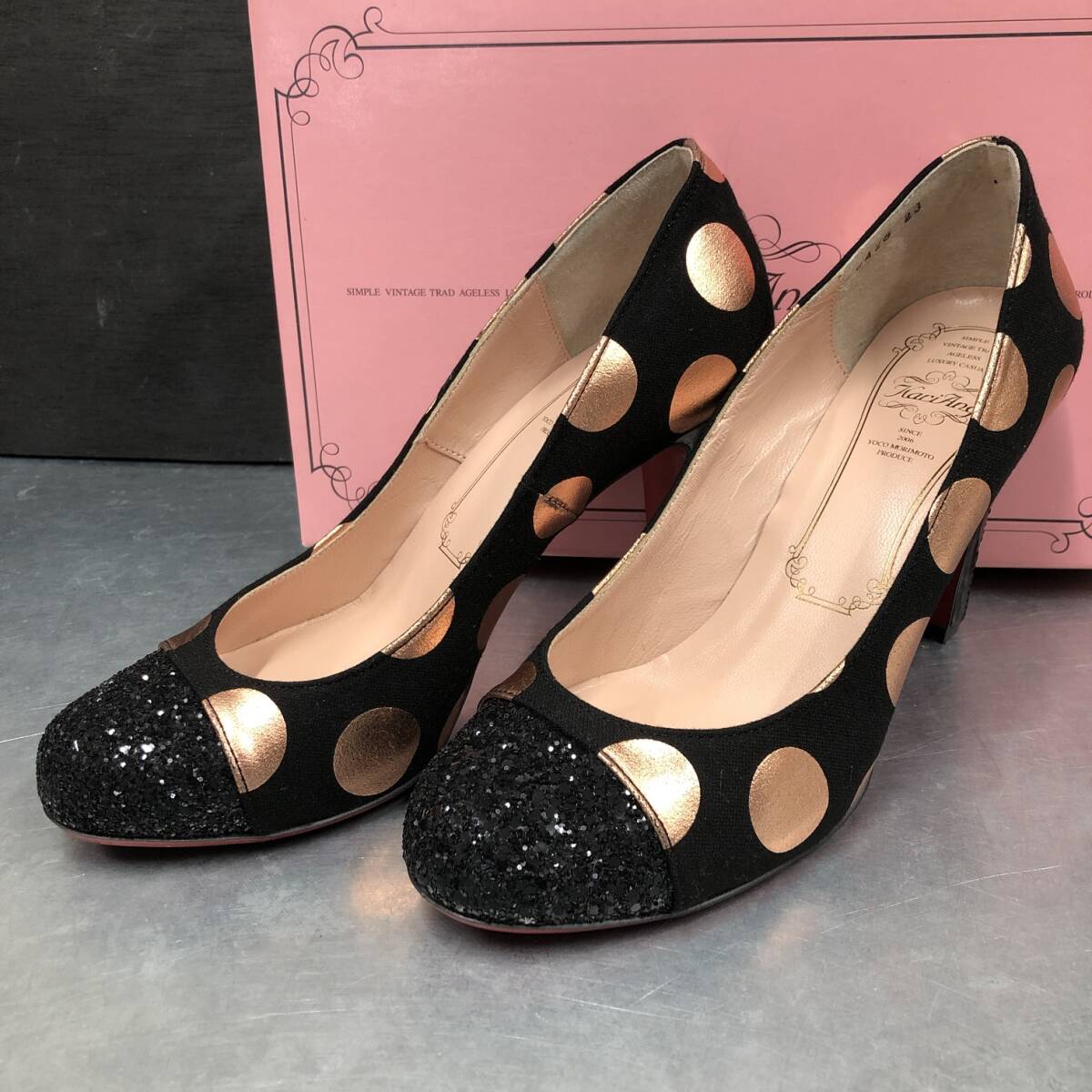 商品名 :WQ645●KariAng:箱付き スパンコールドットパンプス ●23● ブラック/ブロンズ系 カリアング