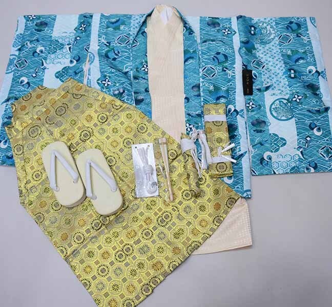 項目 | 五歳 羽織袴フルセット ・羽織 ・着物 ・長襦袢 ・袴 ・草履 ・角帯 ・扇子 ・短剣 ・羽織紐 ・お守り ・半衿(襦袢へ縫いつけられております) |
