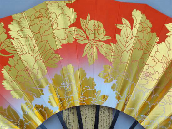 舞扇子 A1893 金箔牡丹 朱天ぼかし 【箱なし】