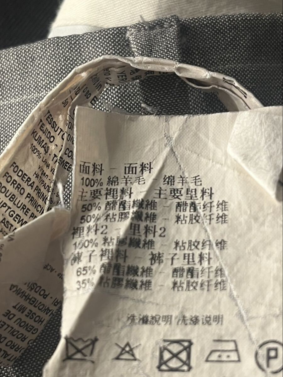 カラーはグレーです。素材は、表地毛100%、裏地アセテート50%、粘着繊維50%になります。
