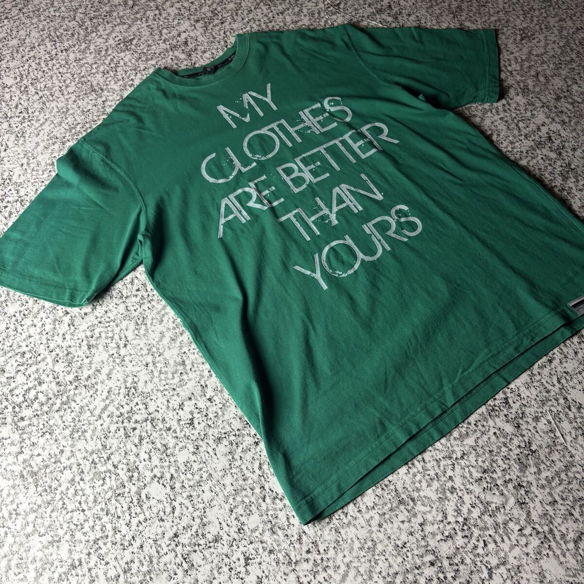 【90sオールド】ショーンジョン オーバーサイズ メッセージプリントTシャツ グリーン XXLサイズ 古着 パフダディ