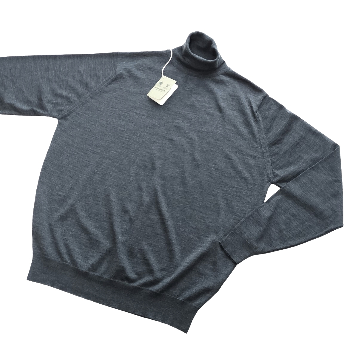 L相当 メンズ ジョンスメドレー 最高級メリノウール タートルネックセーター LEVINE チャコールグレー JOHN SMEDLEY イギリス製★