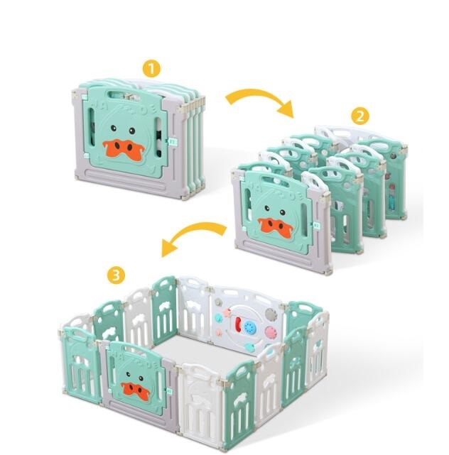 人気品ベビーサークル 折りたたみ ドアロック機能 ベビーガード おもちゃ付き ベビーフェンス キッズサークル