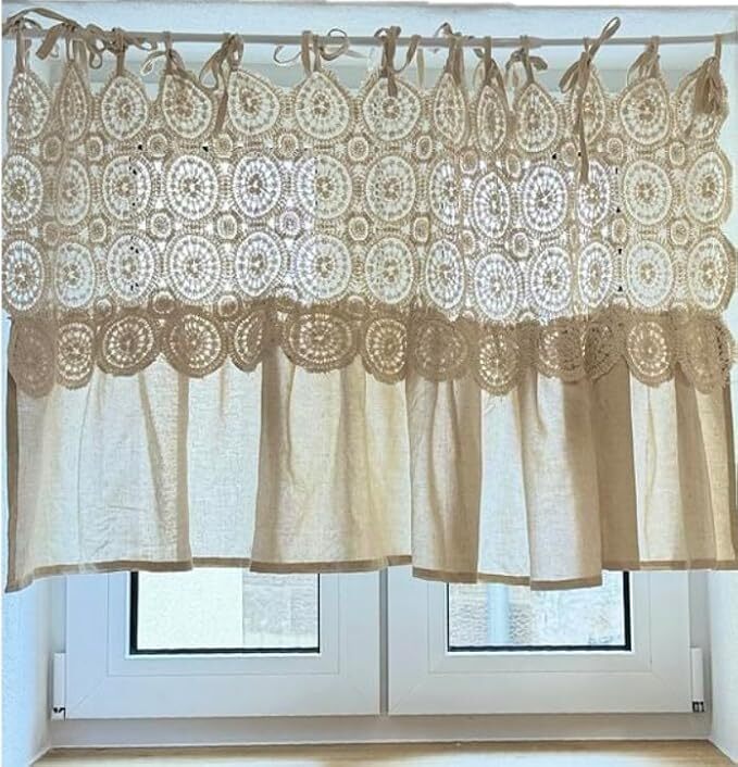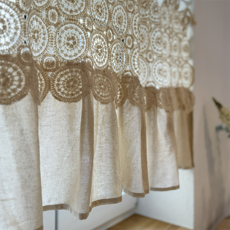• 生成りの糸で編み上げた高級感のあるカフェカーテン。