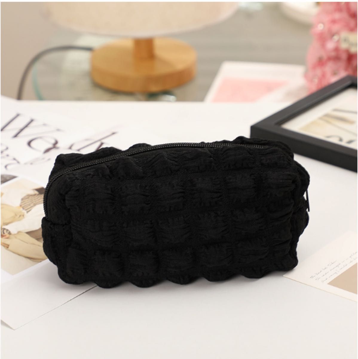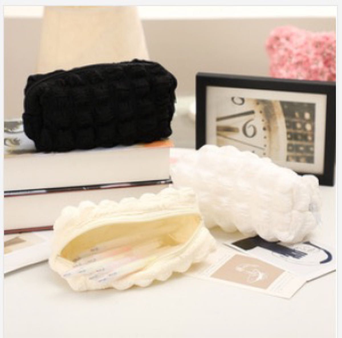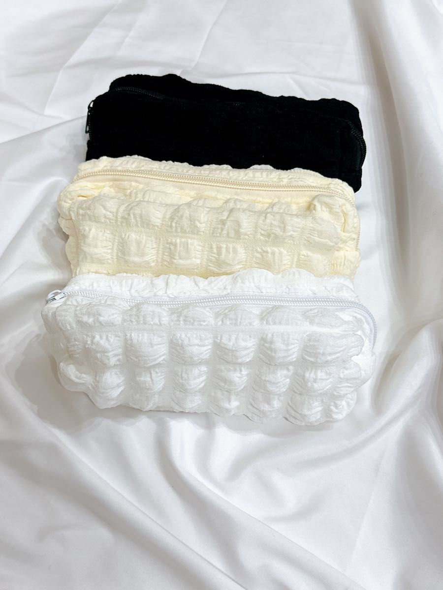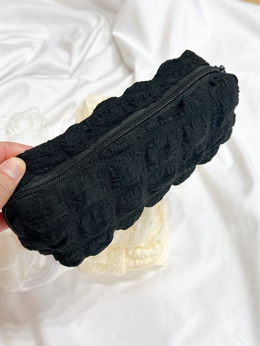 トレンドのポップコーン生地をベースにしたポーチになります^^