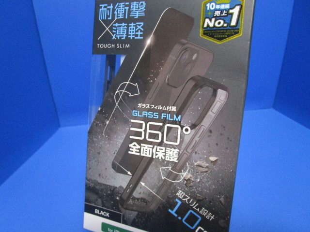 ELECOM エレコム iPhone 15 Pro 用 TOUGH SLIM 360度保護 ケース カバー 背面クリア ガラスフィルム付き ブラック PM-A23CTS3BK