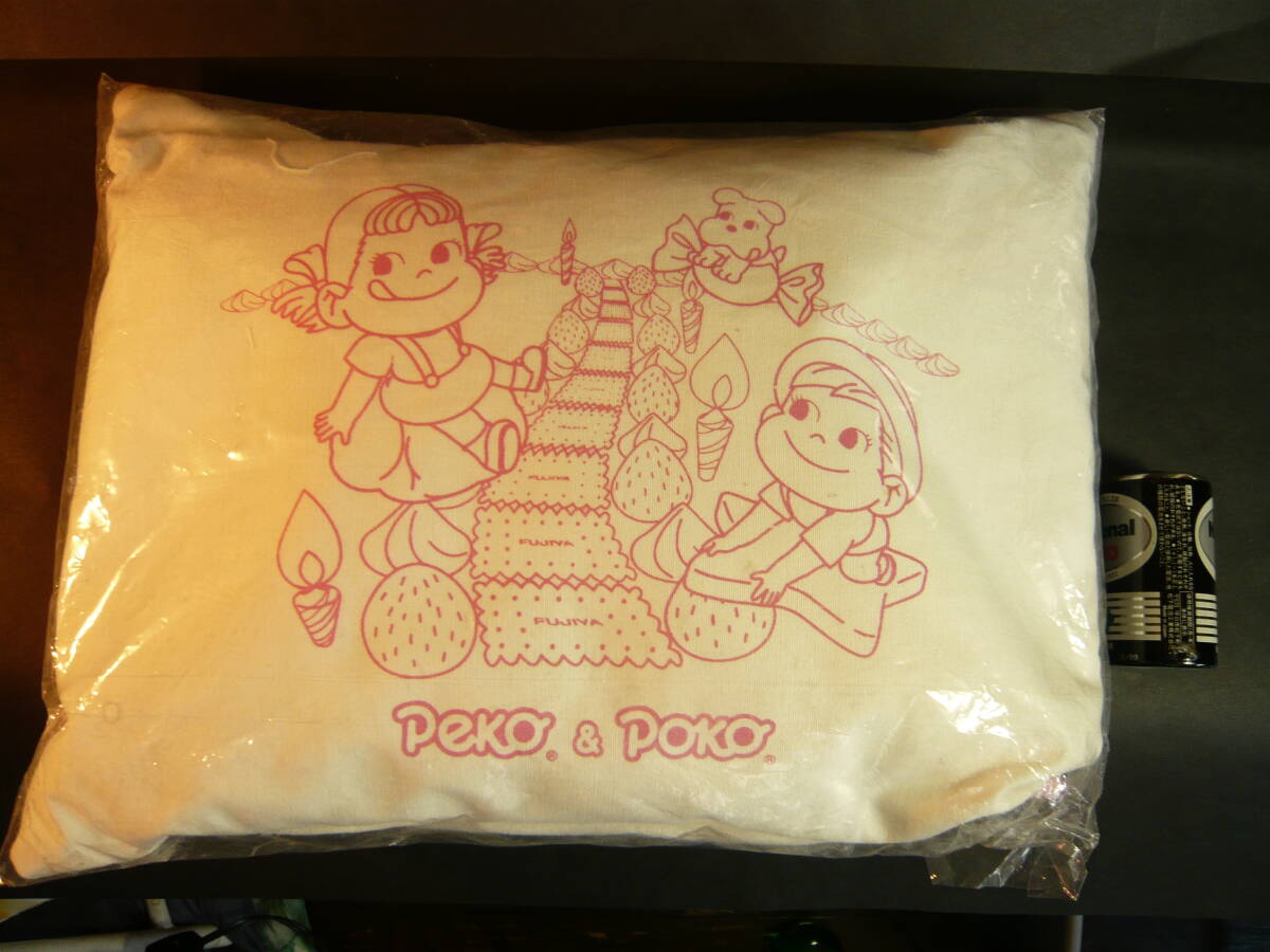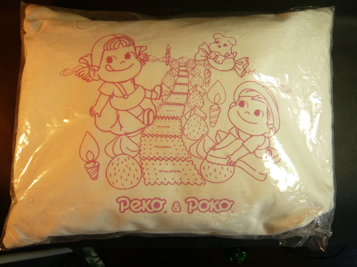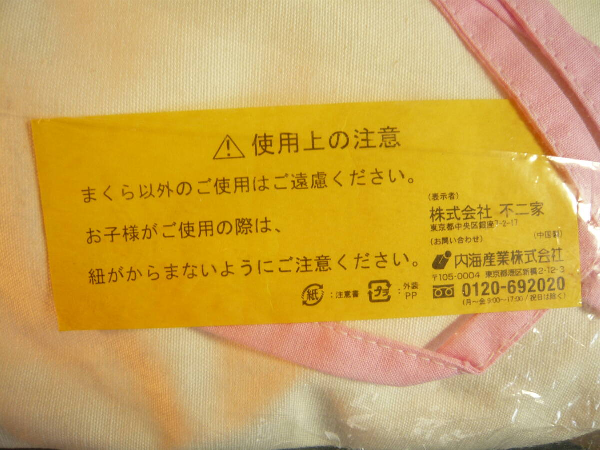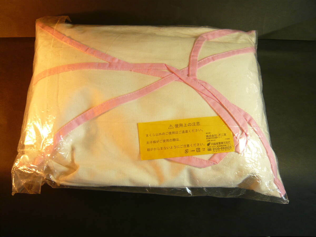 まくら?クッション?です。未開封の新品です。サイズは、縦約24センチ、横約30センチ、厚み約8センチです。中身はごわごわした感じのもので、パイプが入っているものと思います。