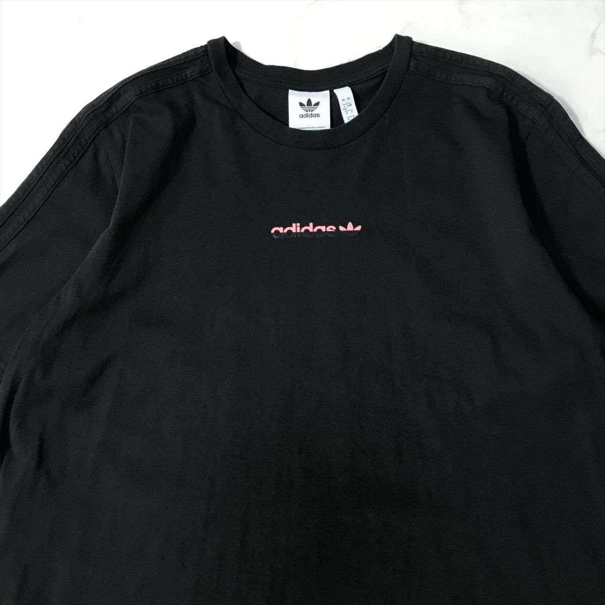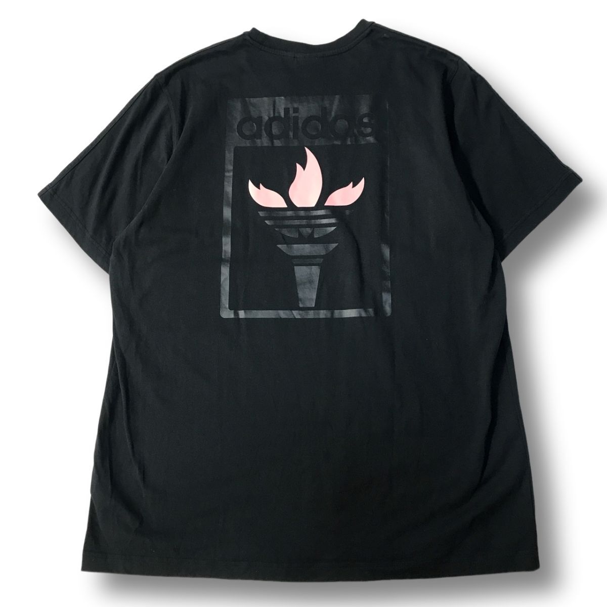 《良品◎》adidas アディダス★トレフォイル*ワンポイント*バックデザイン*Tシャツ*カットソー*ブラック*サイズ4X0(MS4886)◆S60