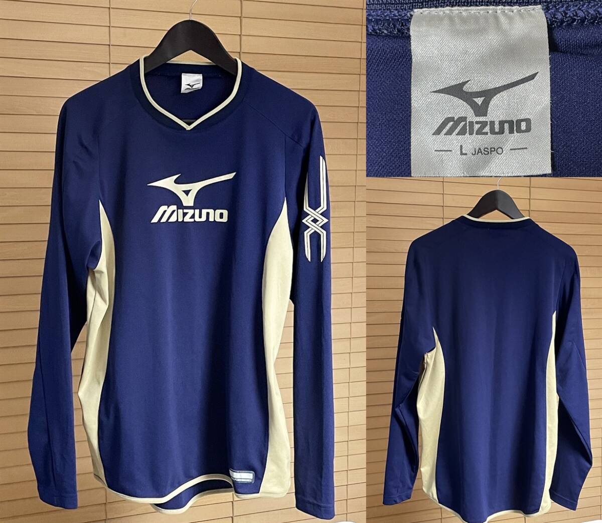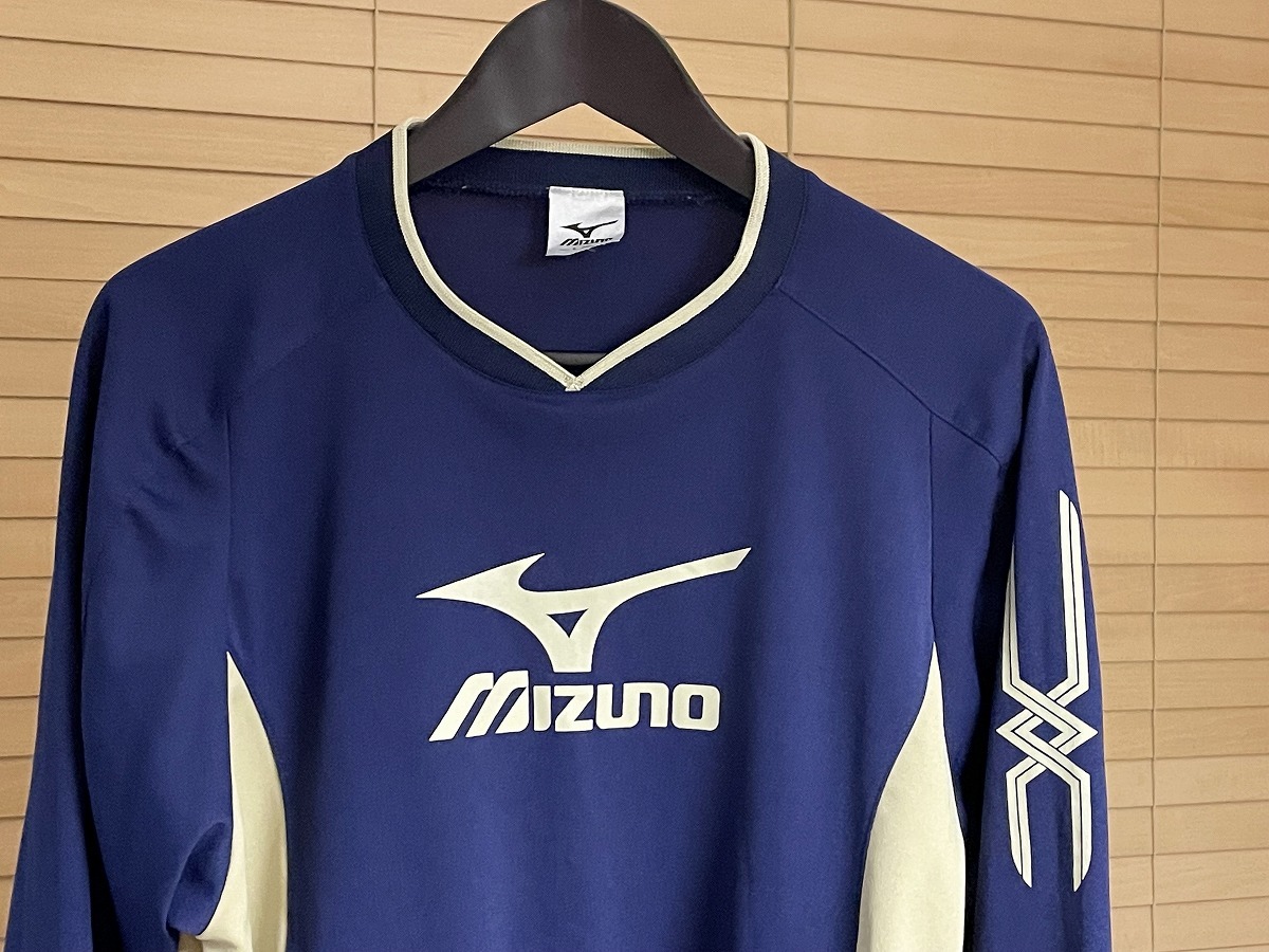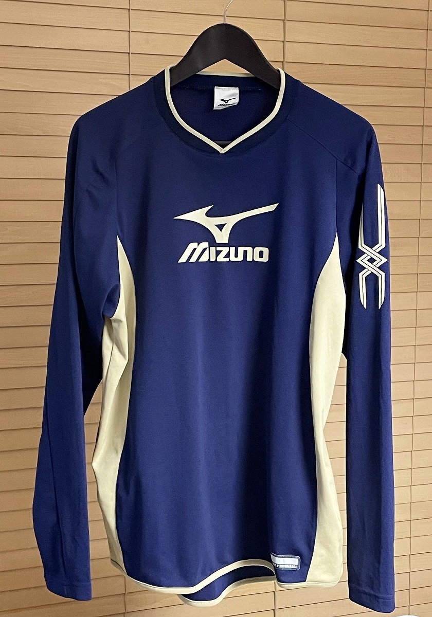 【激安1点のみ 国内正規品】mizuno ミズノ Vネック ロゴ ストレッチ プラシャツ プラクティスシャツ 長袖 シャツ L ネイビー×ベージュ系