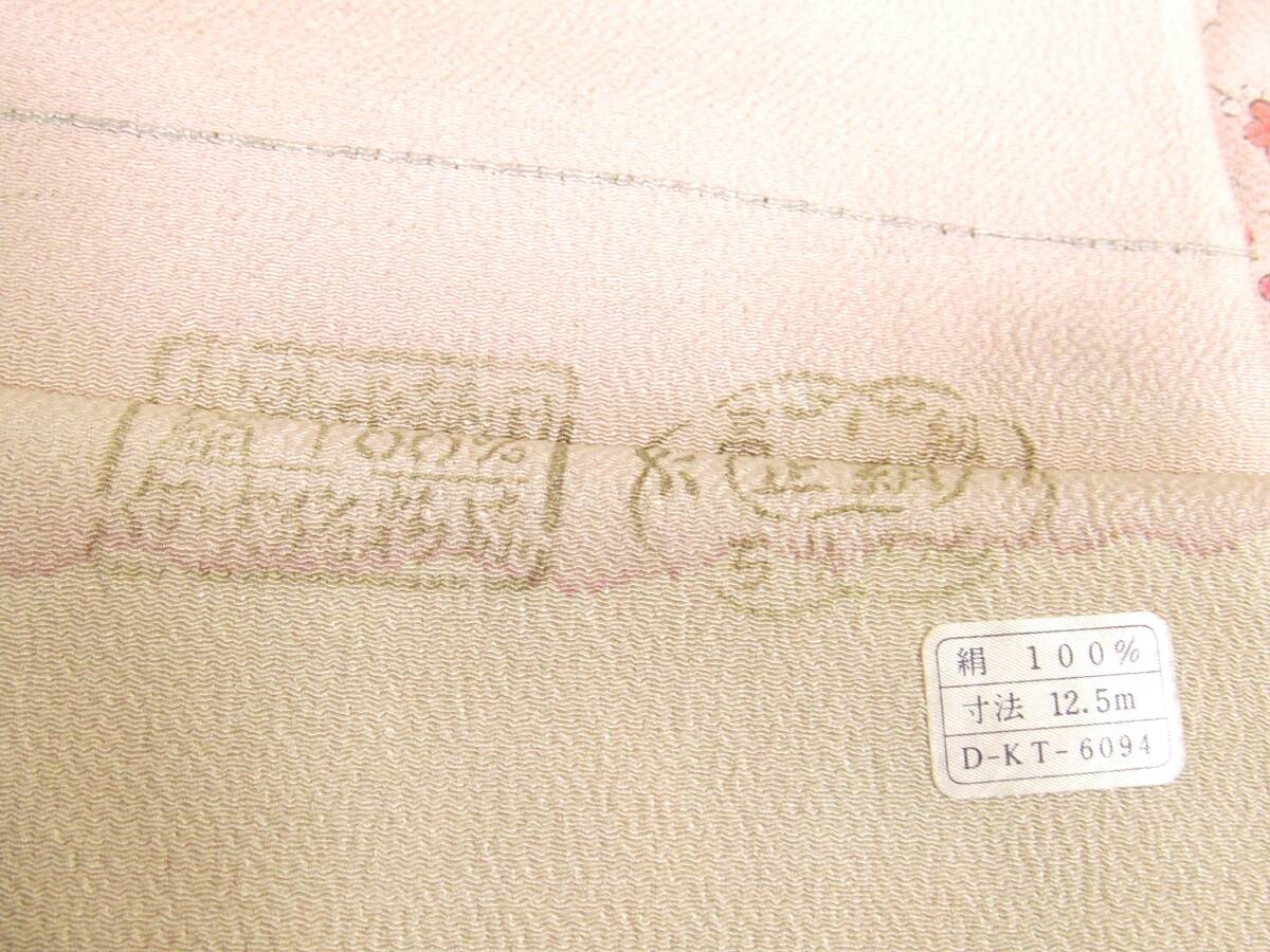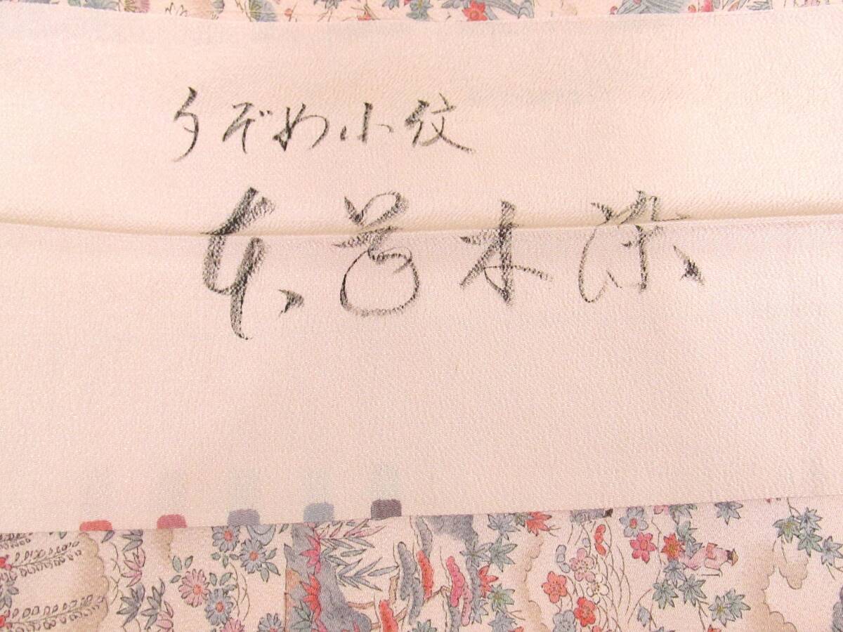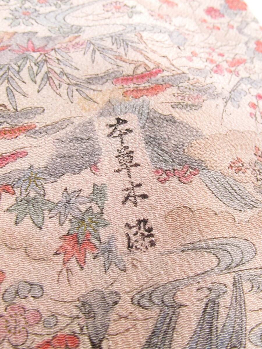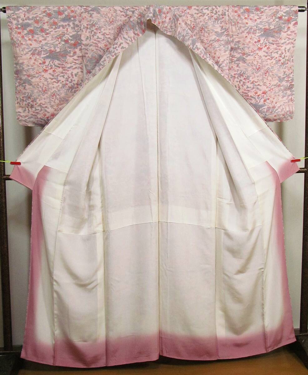 は14 正絹 小紋着物 流水花人物柄 縮緬地 未使用 身丈164cm
