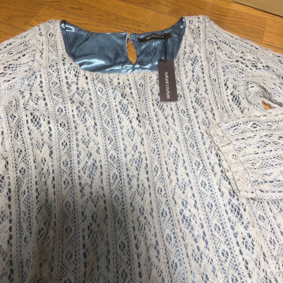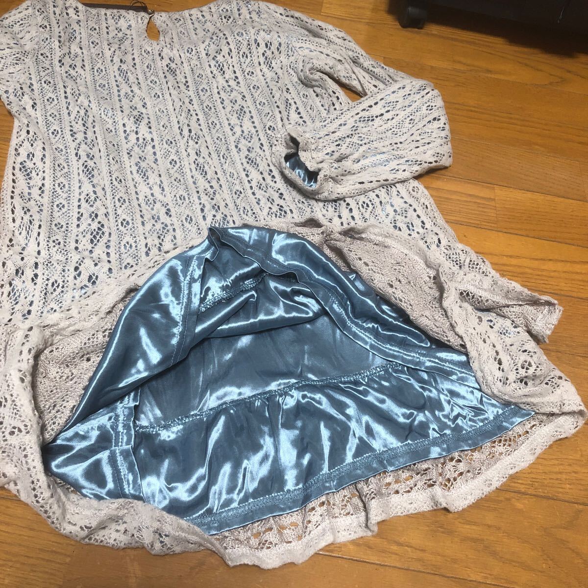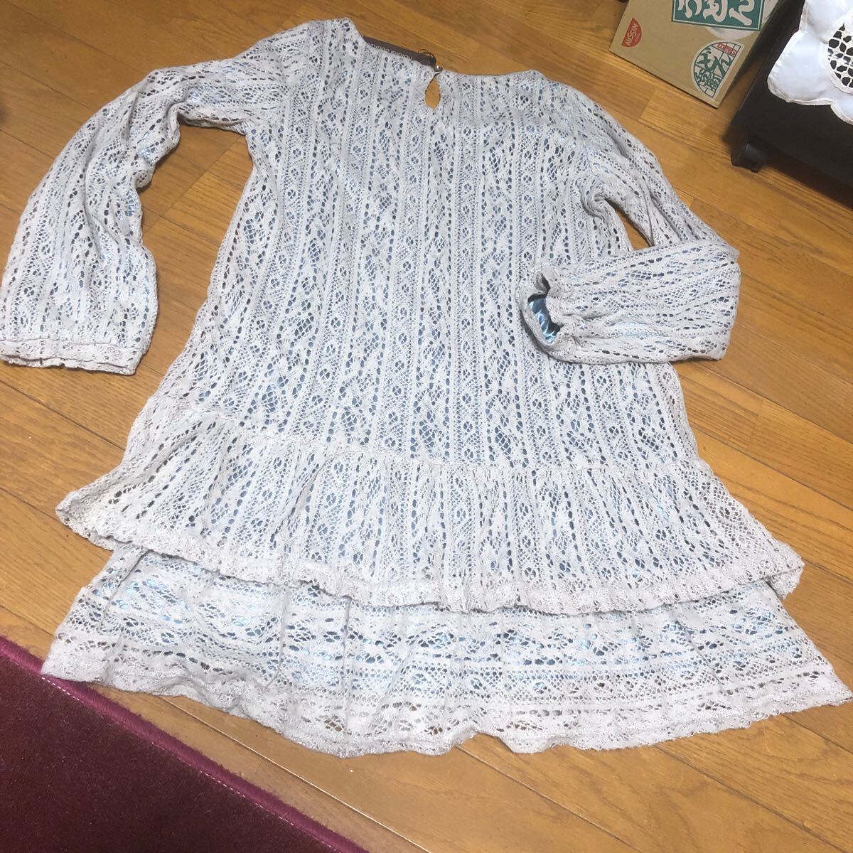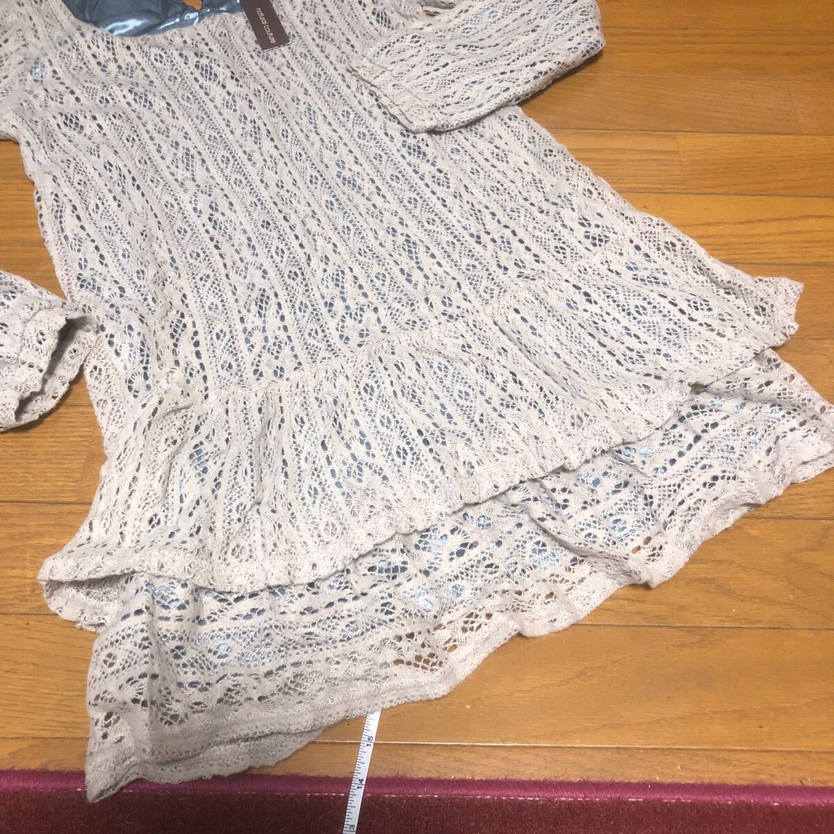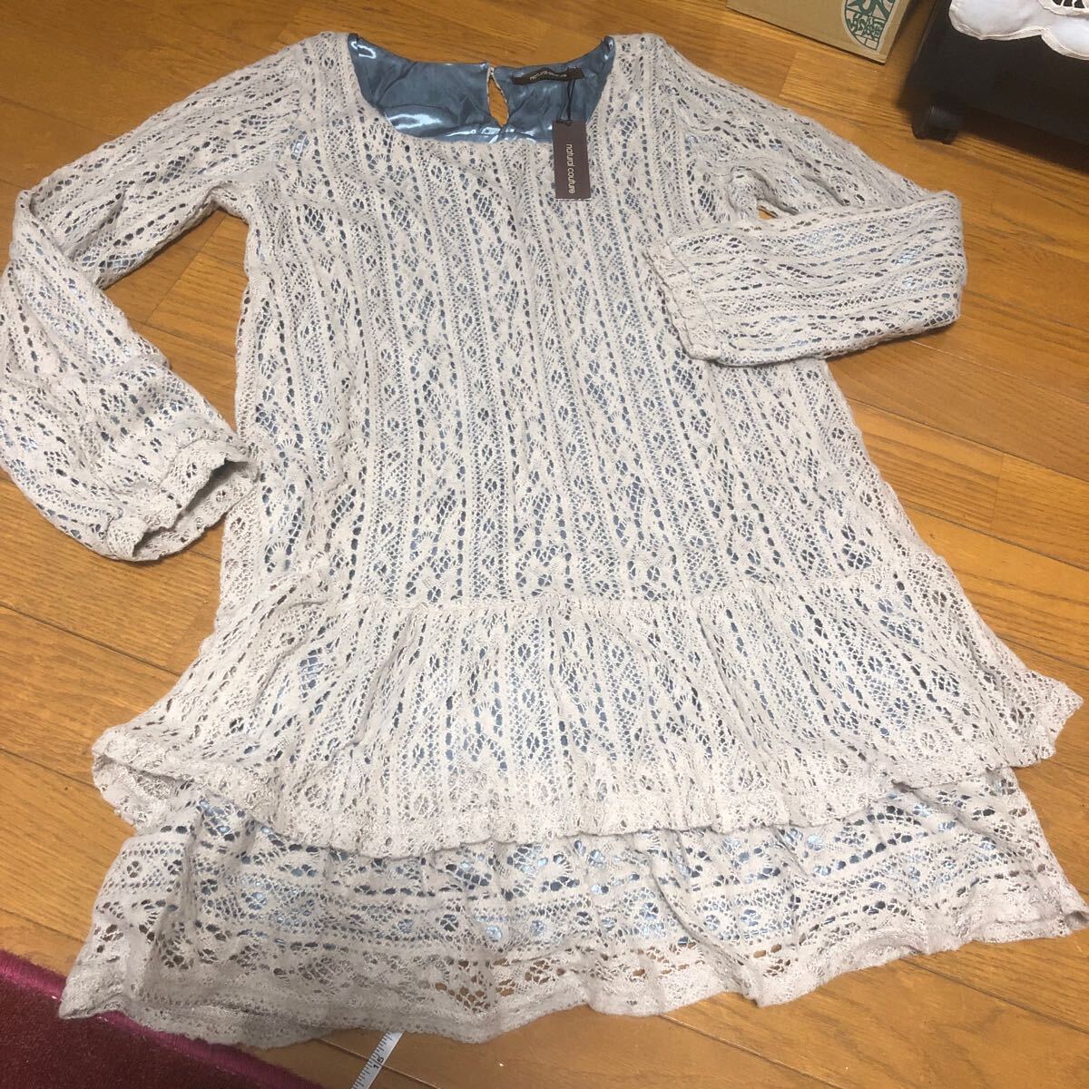 未使用 natural COU 長袖ニートワンピース 裏付き ベージュ お洒落 送料600円