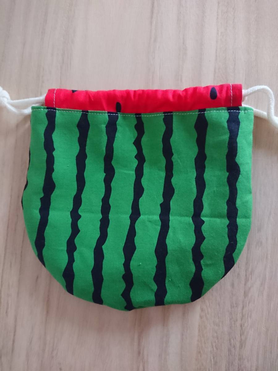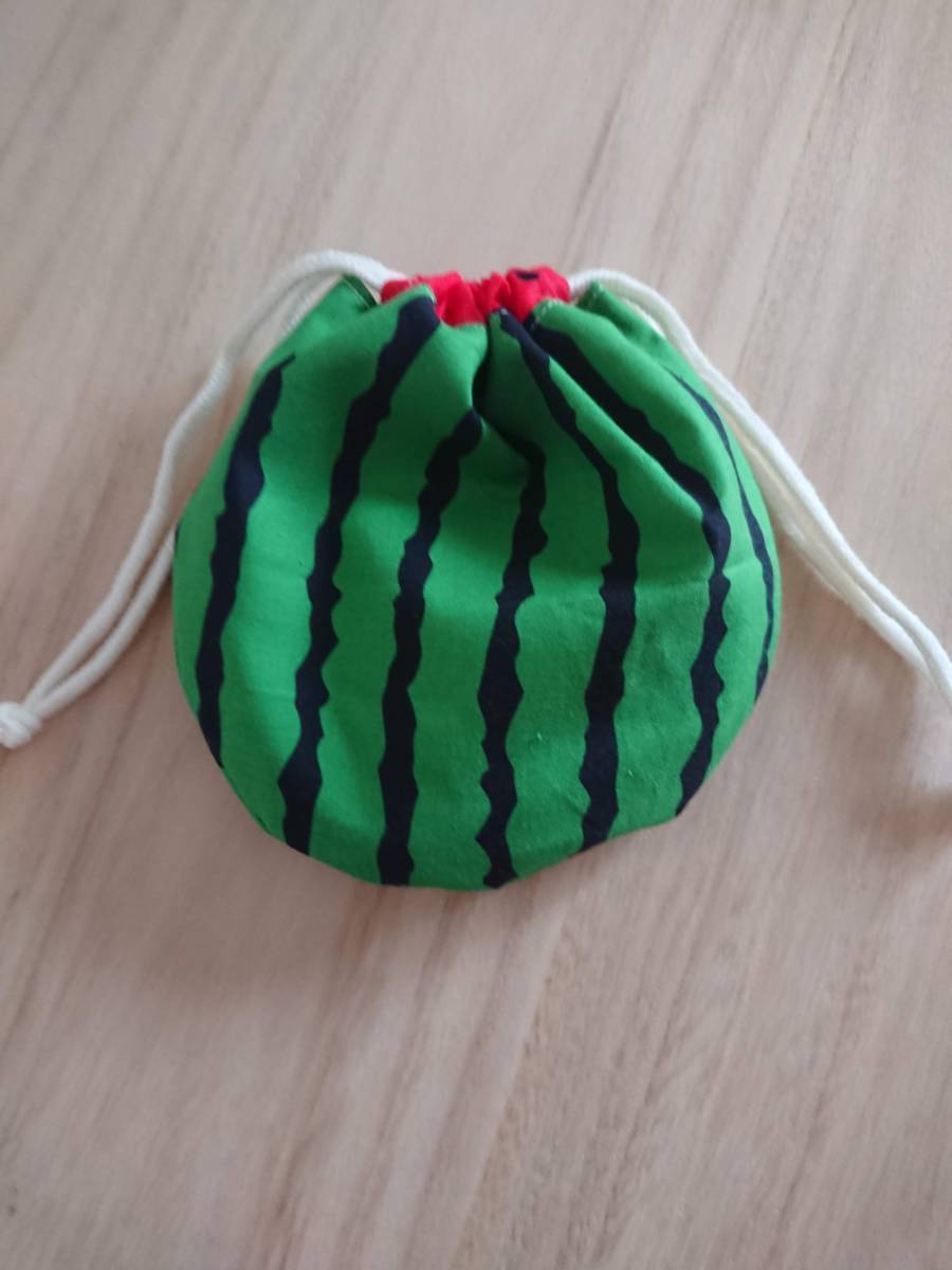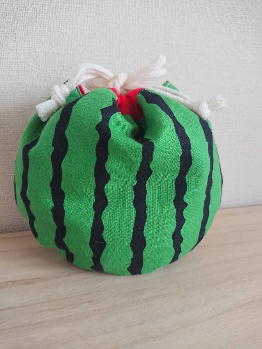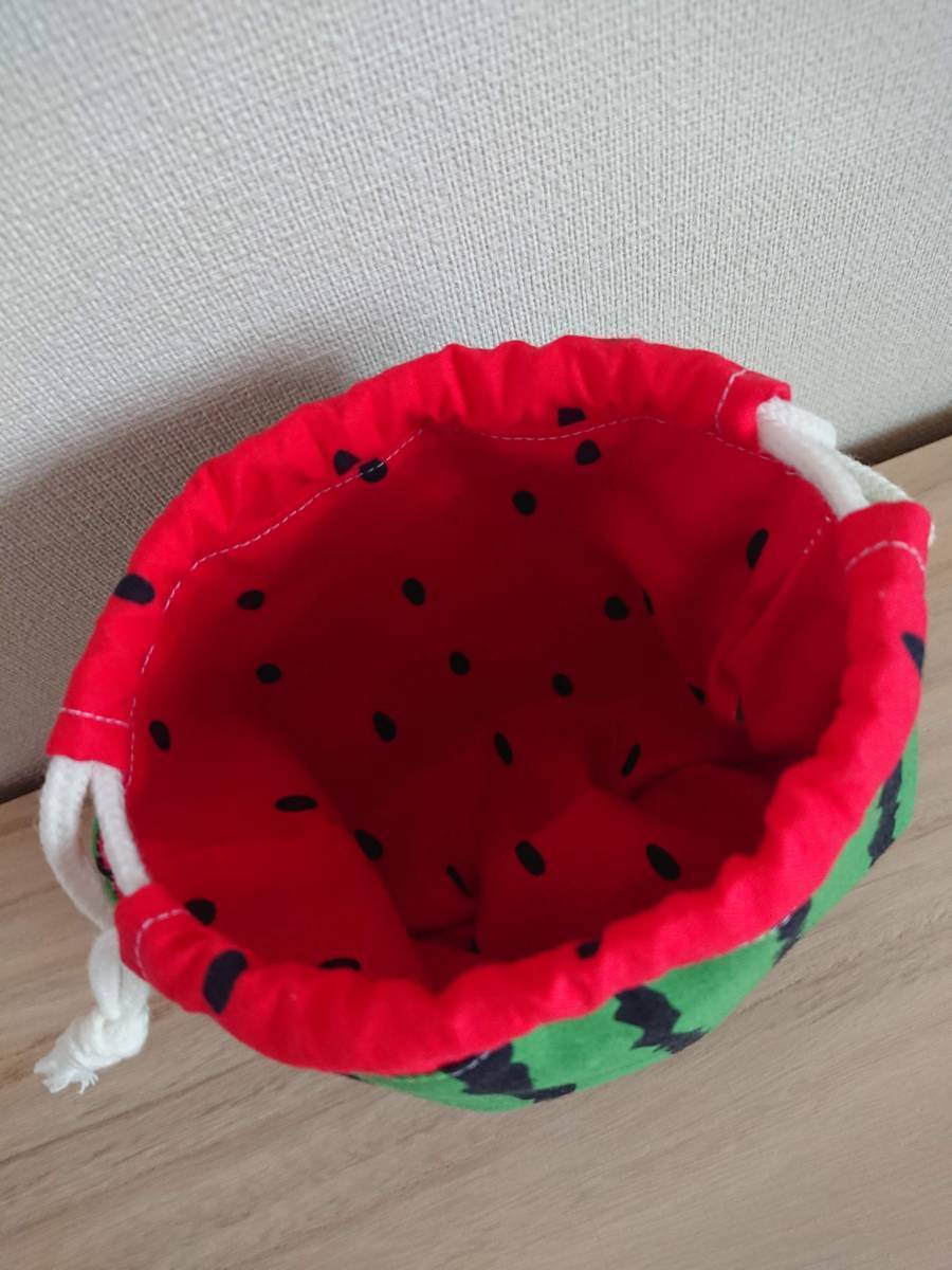 ハンドメイドのすいかの巾着ポーチです。