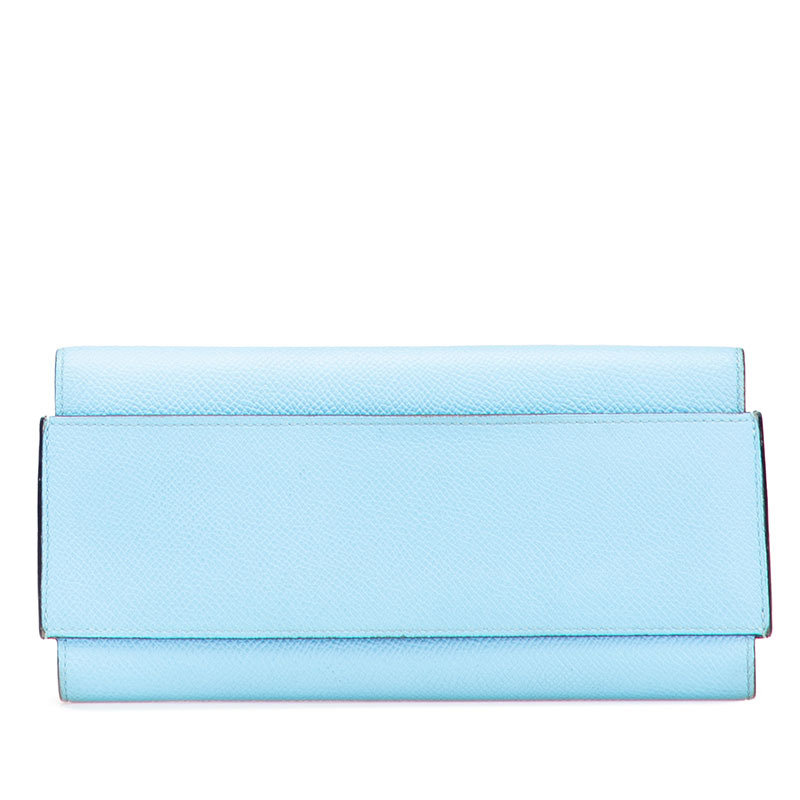 エルメス パッサンロング 長財布 セレスト スカイブルー ヴォーエプソン レディース HERMES 【中古】