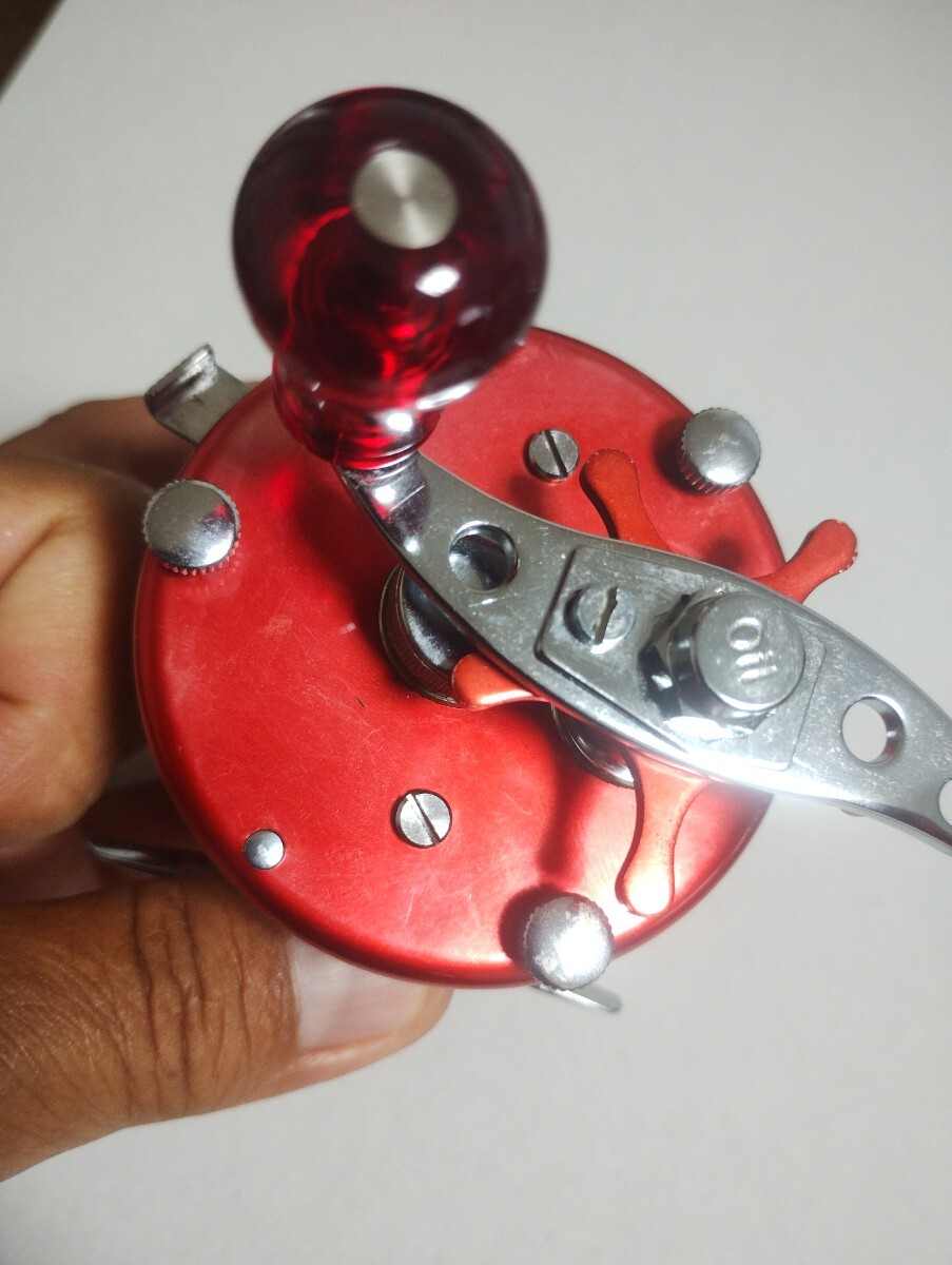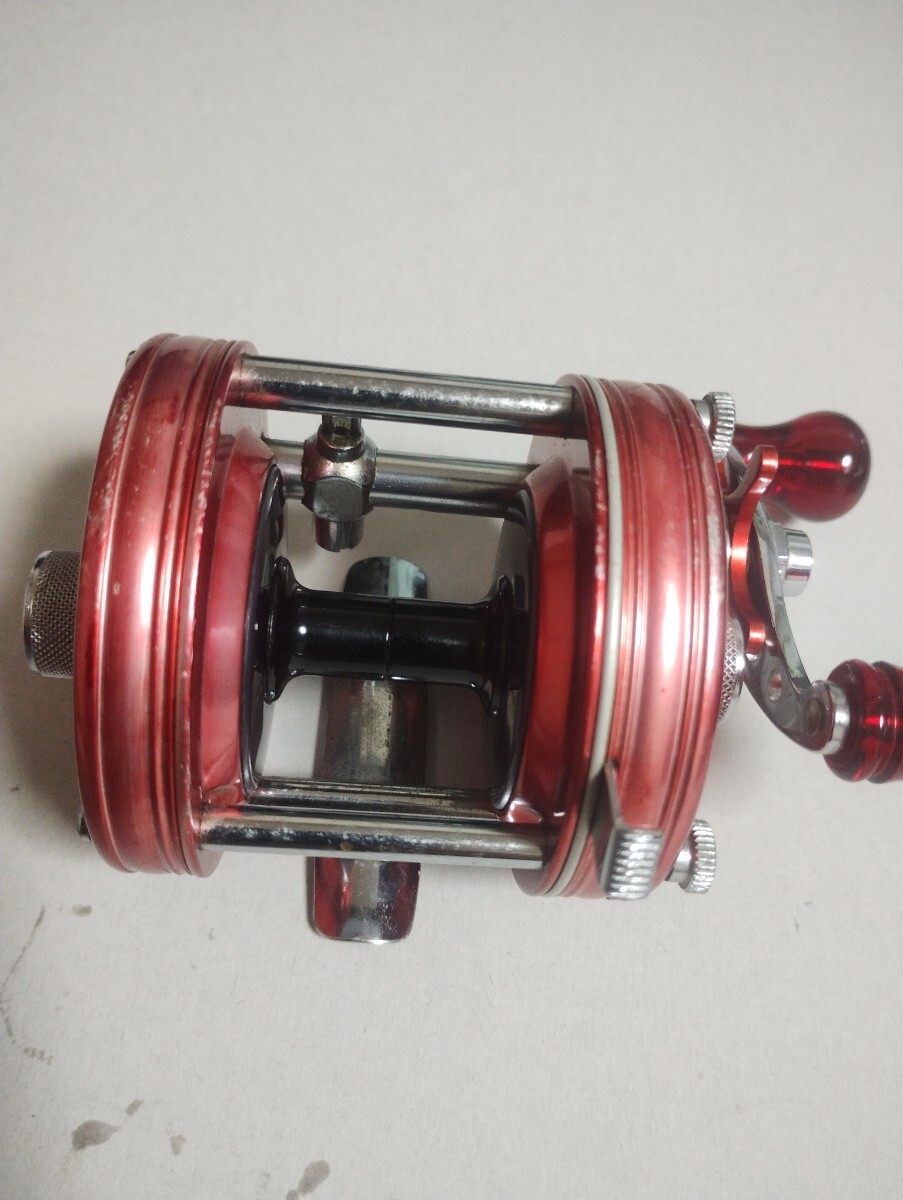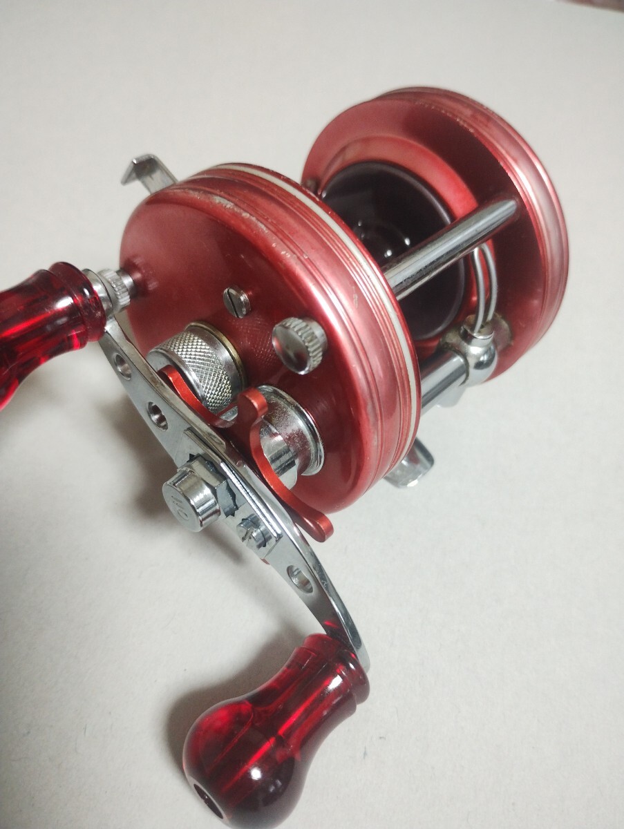FN437448のオールド ビンテージ アンバサダー 5000になります。複数所有しているので整理のため出品します。ハンドルは純正ではなく 中古で購入後取り付けてますが ハンドルノブにゴリ感と音が出ます。全体的に ボディーの赤が薄くなっています。古いものなので 経年劣化?日焼け?なのかはわかりません。クラッチのキレ ハンドル回転など機能上の問題は無いと思います。とにかく 古いものなので 理解して入札下さい。複数の所有者を渡ってますので、完全なオリジナルでは無いと思います。。