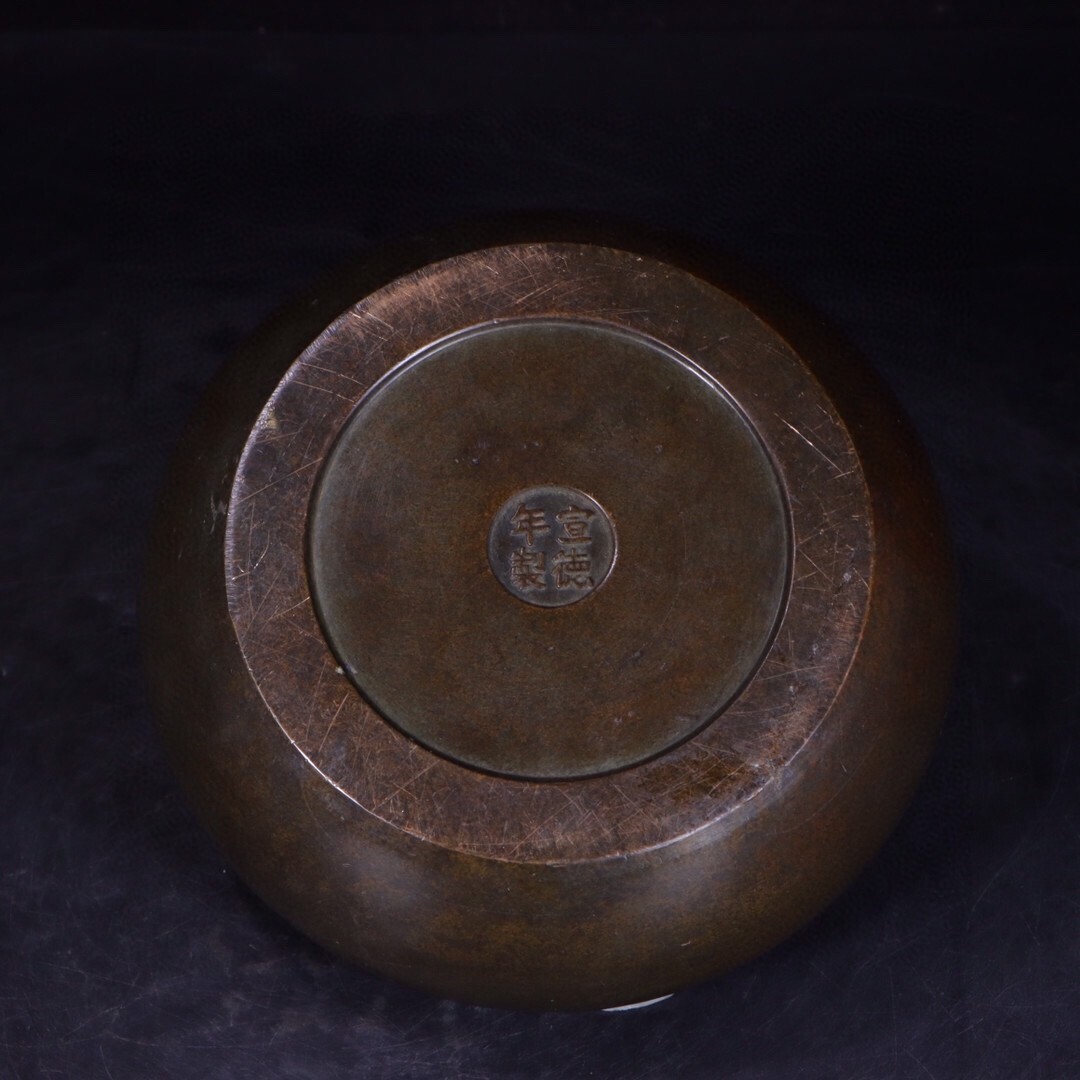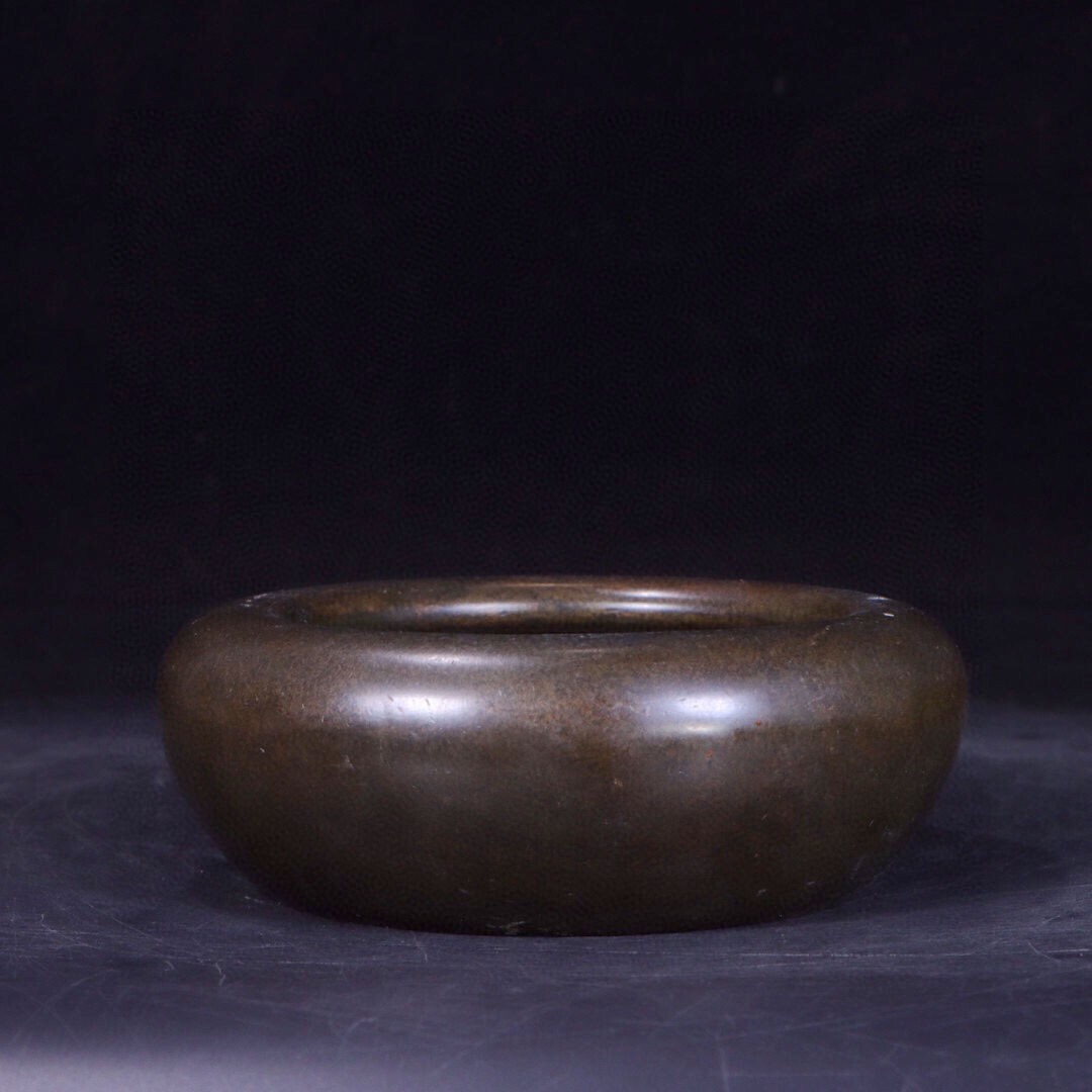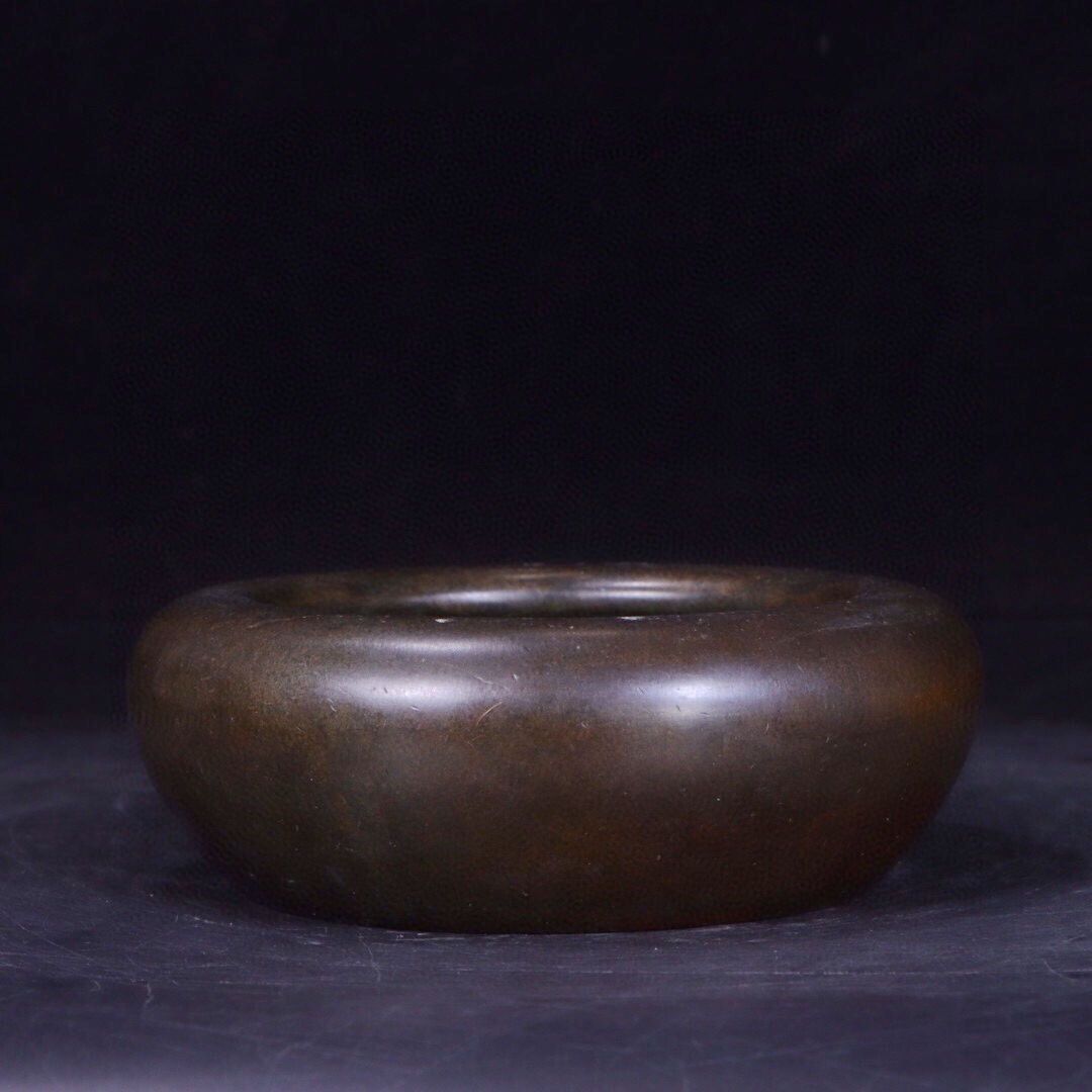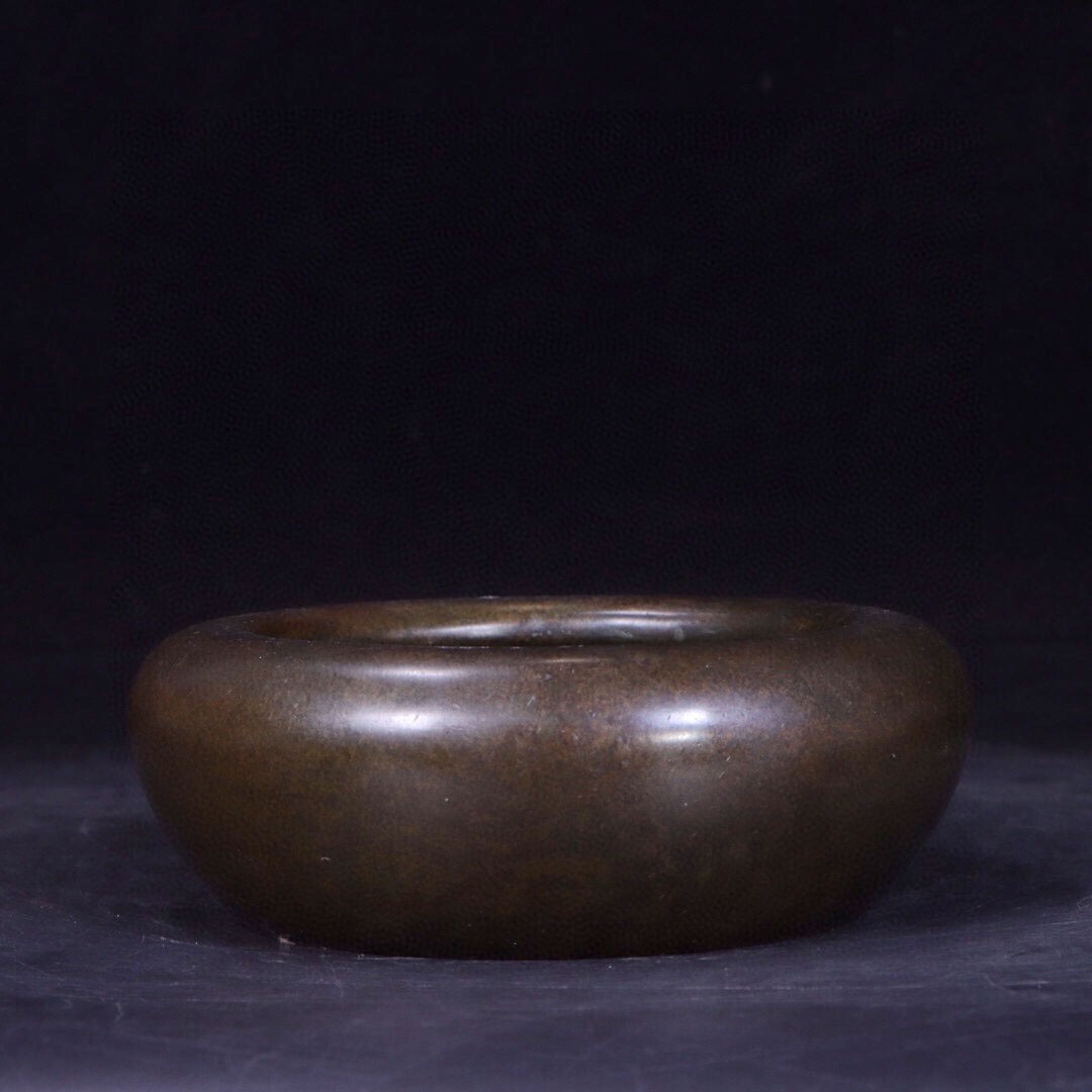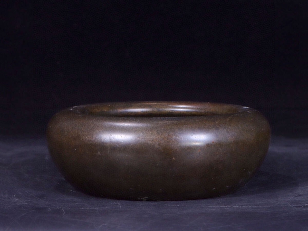 「明代 宣徳年製 古銅彫 鉢式 筆洗」旧銅器 置物擺件 賞物 中国古美術 旧蔵出