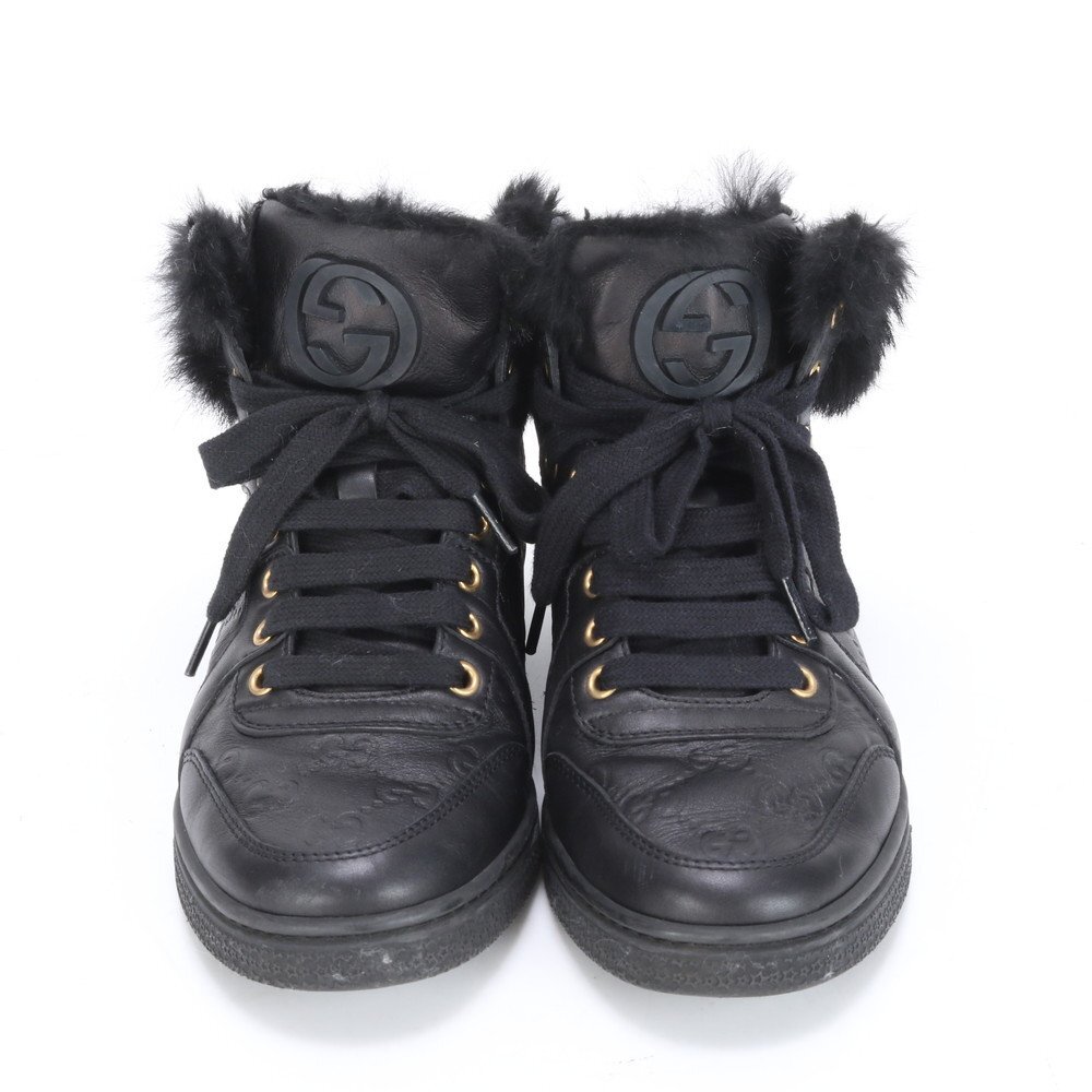 1円■美品■グッチ■グッチシマ ファートリム ハイトップ インターロッキング G レザー ハイカット スニーカー 靴 レディース MME BR20-8