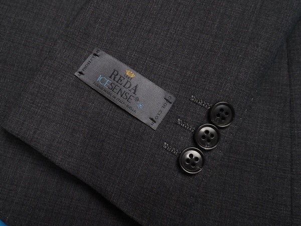 AMFステッチ、ラペル毛芯など、百貨店向けならではの上級仕立てで仕上げられております。ファブリックはイタリア随一の伝統と最大級の規模を誇るREDA社のウール100%生地を使用。REDA ICESENSEは、ゼニアのクールエフェクトと同じ原理から、スーツ地の表面温度を下げる効果のある春夏用素材です。赤外線の吸収を抑え、反射を促進することで、スーツ生地の表面温度を8度も下げることで、スーツ内の温度上昇を下げ体感温度はマイナス10度以上も変わります。ポーラー調のシャリ感のある生地感になります。