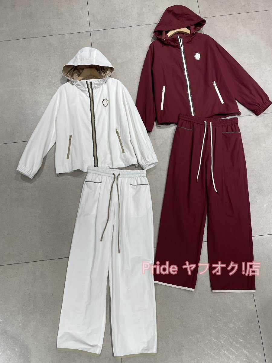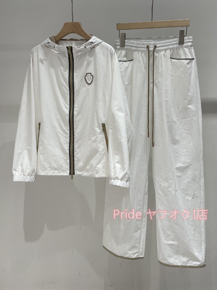 BRUNELLO CUCINELLI ブルネロ クチネリ レディース 刺繍コットンカジュアルセットアップ 2点セット - チェーンデザイン/ ホワイト S-L