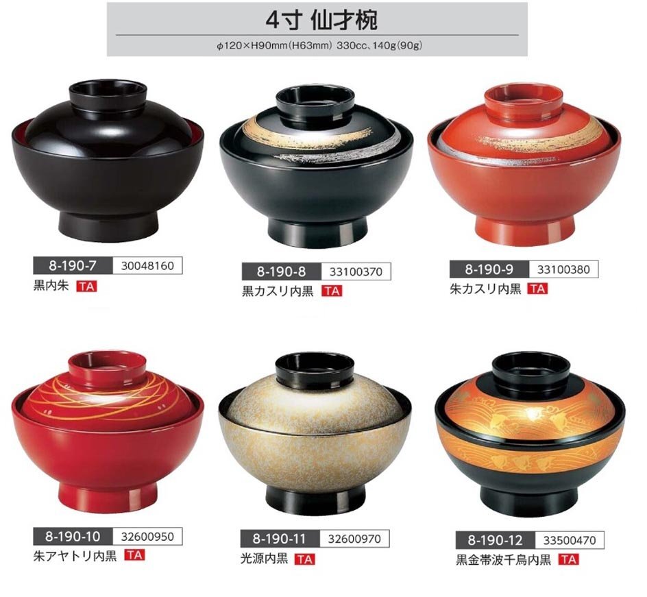 ☆業務用漆器耐熱4寸仙才カスリ吸物椀黒(約径120XH90mm)30個