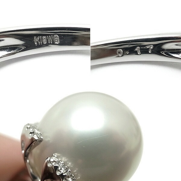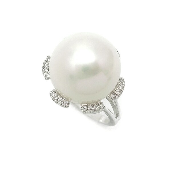 【緑屋質屋】特選ジュエリー 南洋パール リング 14.5mm ダイヤ入り 0.17ct K18WG【中古】