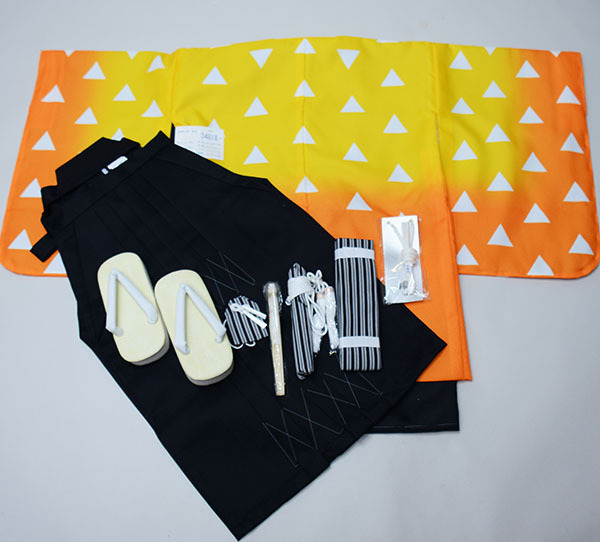 サイズ | ■羽織丈約65cm 裄丈約53cm 袖丈約48cm 着物丈約73cm 袴丈約60cm(紐下) ■草履18cm(フリーサイズ) 適合身長95cm~125cm ※着丈=背中首のゴリゴリ部分から、足くるぶしまでの長さ ※裄丈=腕を斜め45度下げた状態で、背中首ゴリゴリ部分から、肩上を通して、手くるぶしまでの長さ ※草履サイズの交換可能です。 詳しくは下段の「草履の交換」をご確認ください。 |