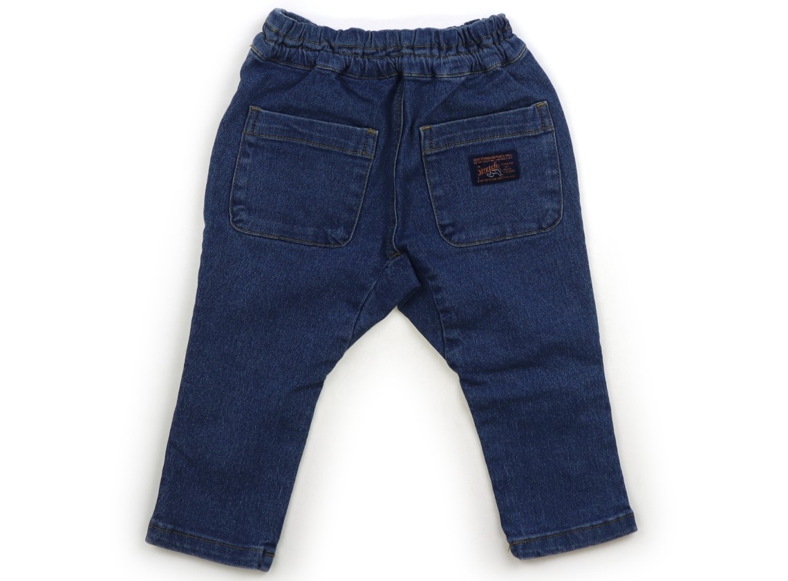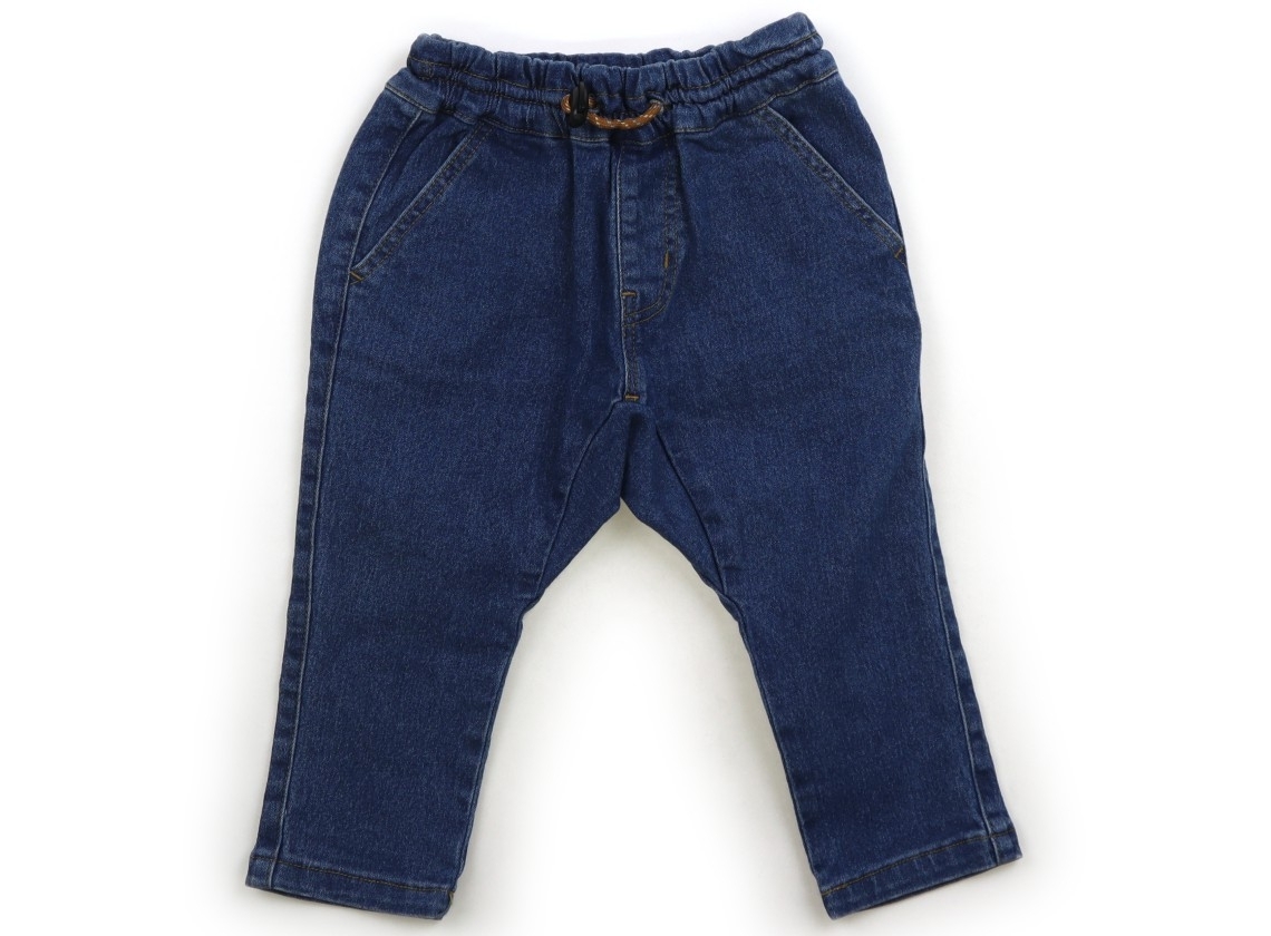 ストレッチデニム。やや厚手で張りがあります。ウエストは総ゴムで、シワ部分に色褪せがありますが、目立った汚れのない良品です。男女どちらでも着られるデザインです。