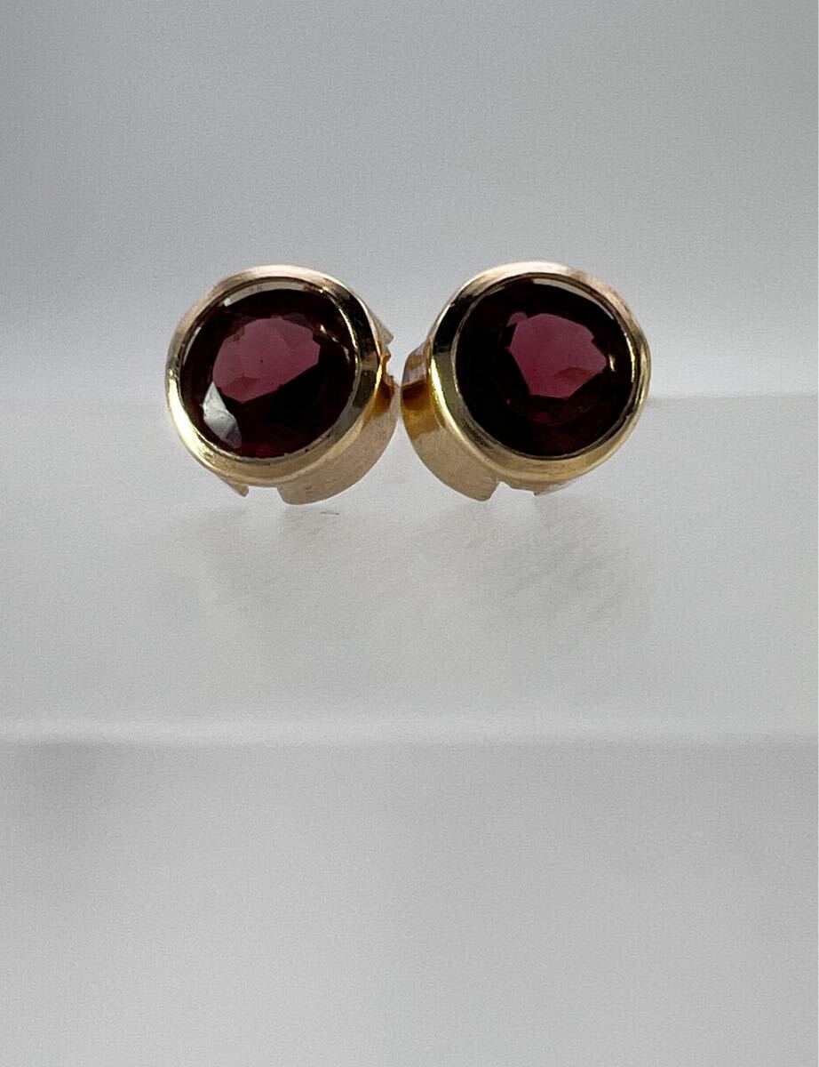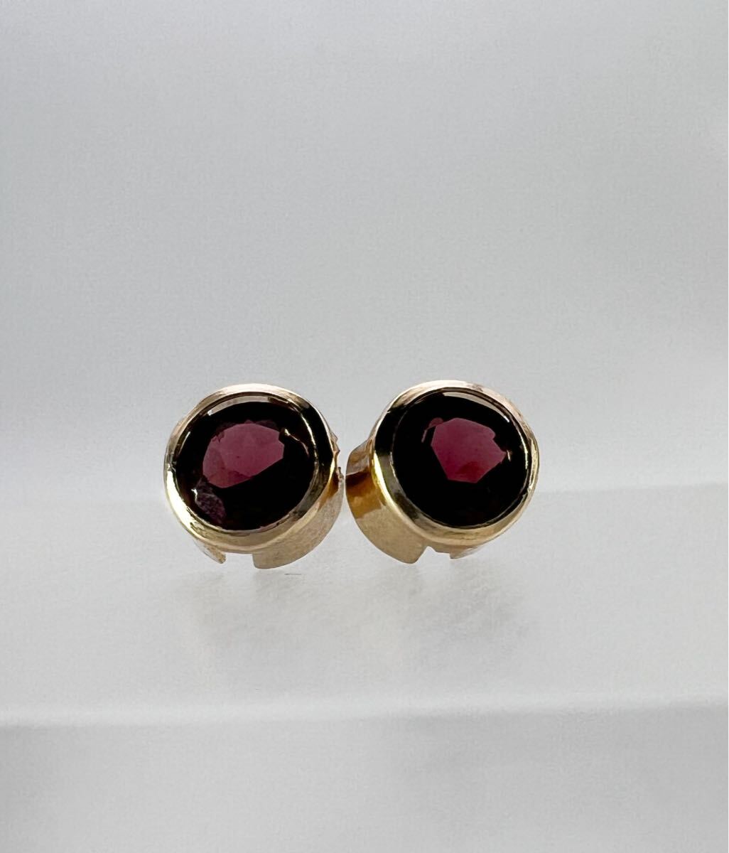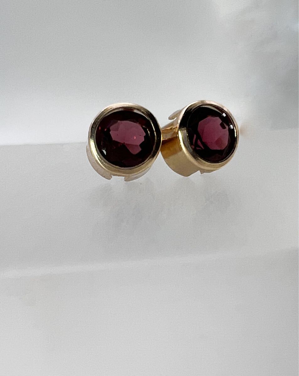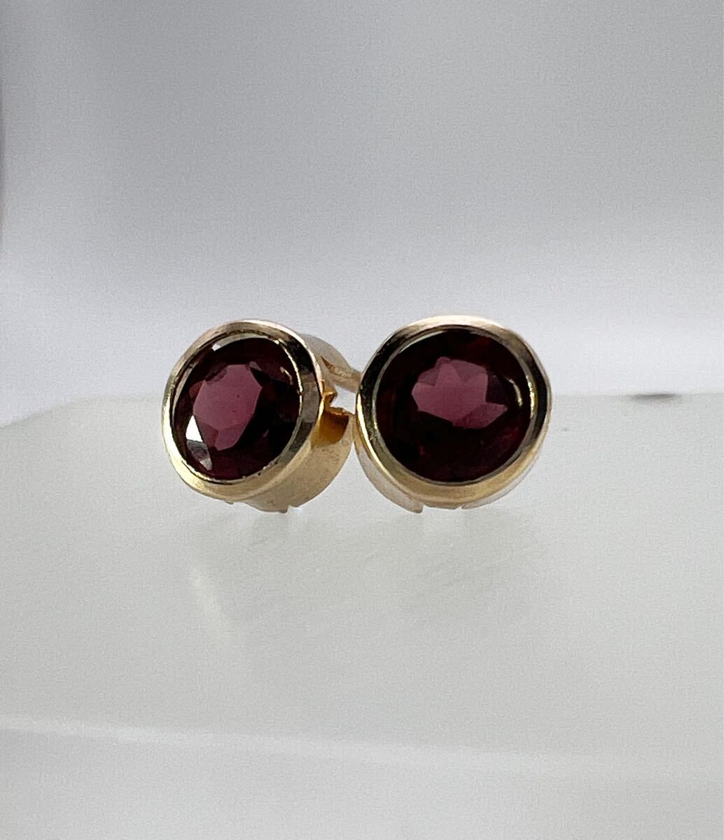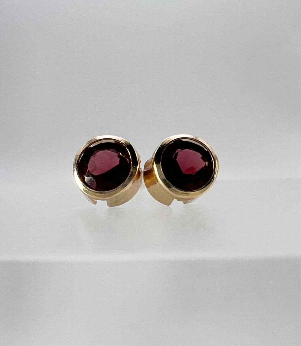 インド産の高品質な、ロードライトガーネットを使用した覆輪ピアスです。