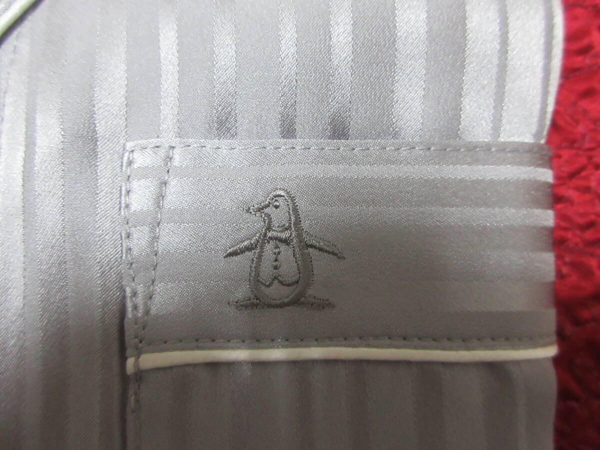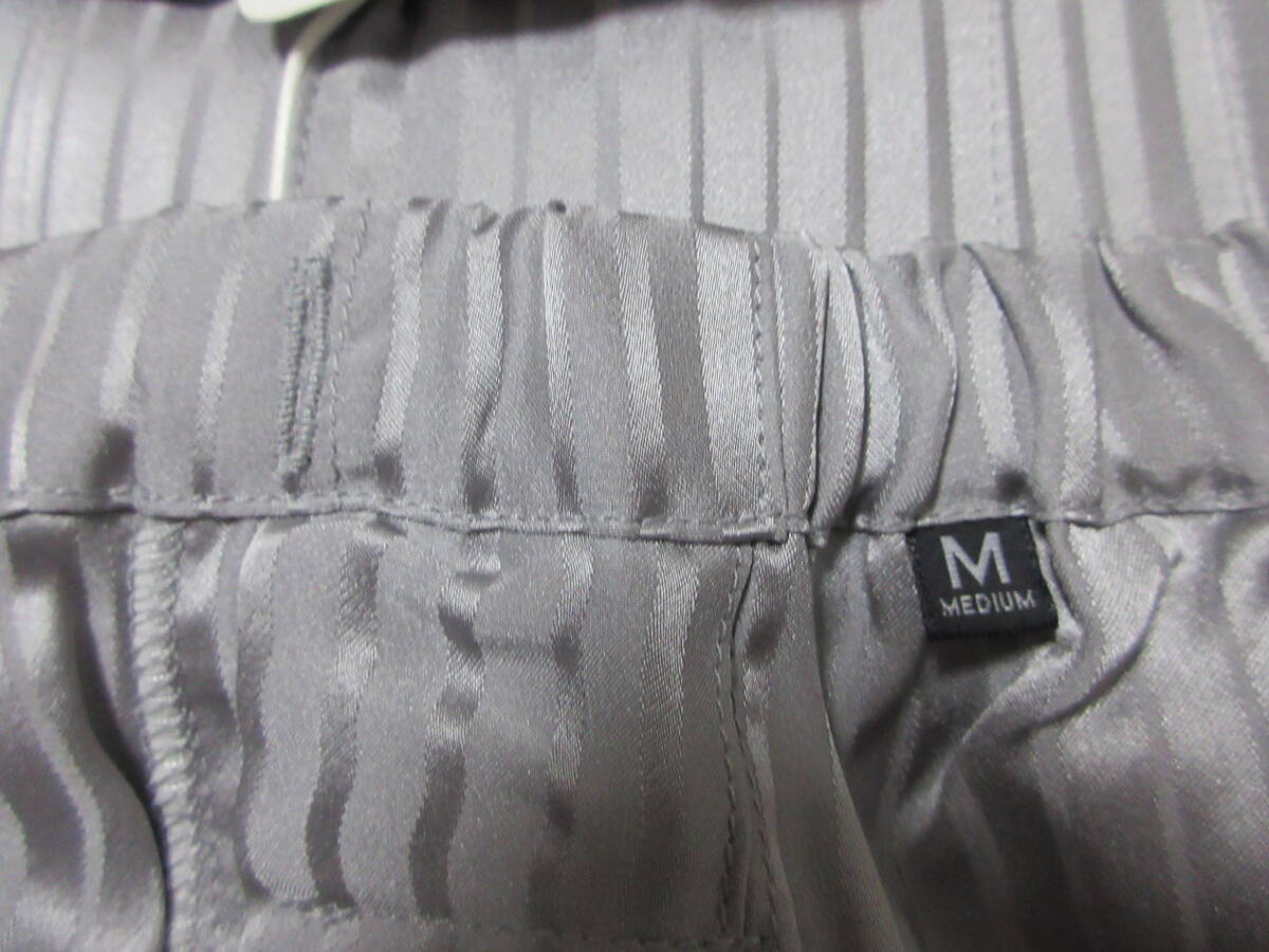 即決 タグ付き未使用 シルク100%パジャマ グレーストライプ Munsingwear オールシーズンメンズパジャマ M絹100 マンシングウェア