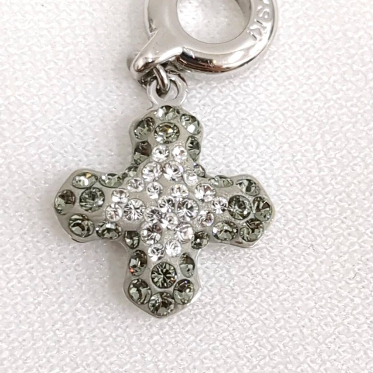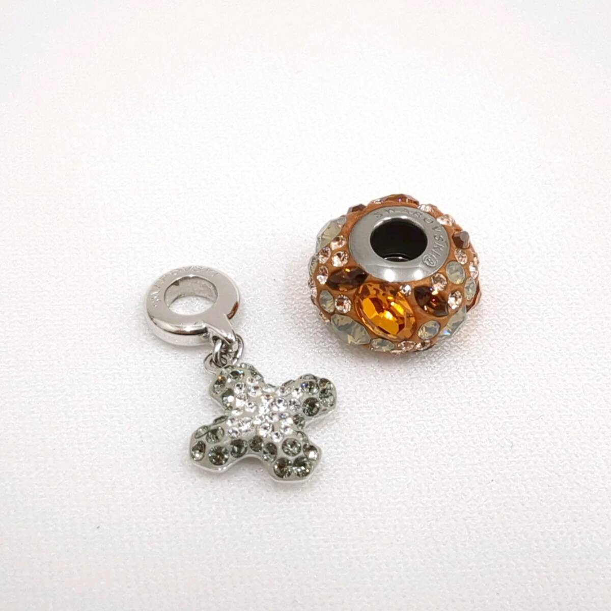 | 【商品名】 #1831A 【2点セット】 スワロフスキー SWAROVSKI トップ クリスタルガラス シルバーカラー ネックレス ペンダント ビーチャームド クロス 【サイズ】 ■ビーチャームド(オレンジサークル) 直径 約15mm 厚み 約9.2mm ■クロス 縦/横 約13.5mm(留め具含まず) 厚み 約4mm ※チェーン穴は各々約4.5mm 【詳細】 usedにつき多少のキズ、くすみがございます 共にクリスタルの取れ、欠けは見当たりません オレンジのビーチャームドの方は刻印がやや薄くなっている箇所がございます ※撮影に使用したネックレスチェーン、トルソーは付属しません | |||