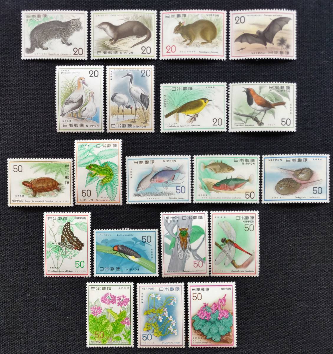 [25081706]【自然保護シリーズ】単片全20種完「イリオモテヤマネコ・アホウドリ・カブトガニ…」 20円×7 50円×13 1974年-1978年 美品