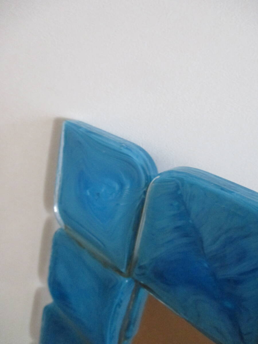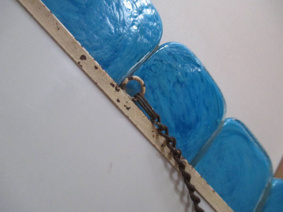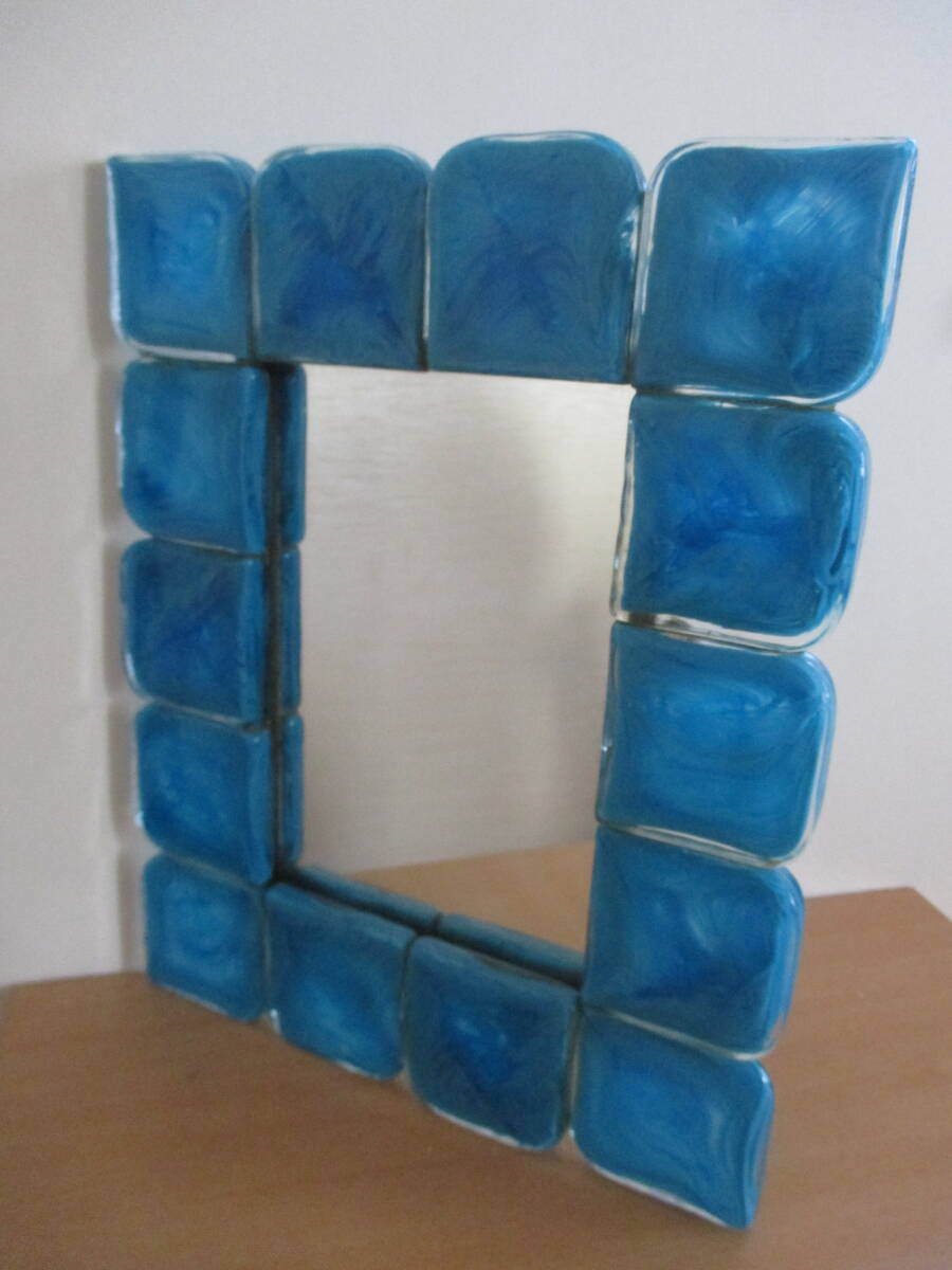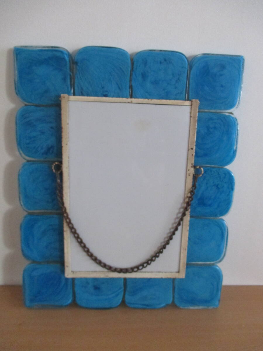 ★送料無料 ビンテージ アンティーク マーブルガラス 額縁ミラー 壁掛け ブルー