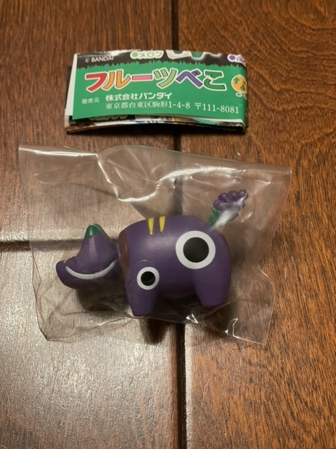 バンダイから出ました「フルーツべこ ならぶんです」全5種から「ぶどう」になります。300円ガチャにしては重量感・厚みのある造形で、長さ約5.5センチ、高さ約3センチです。内袋未開封、リスト付きです。